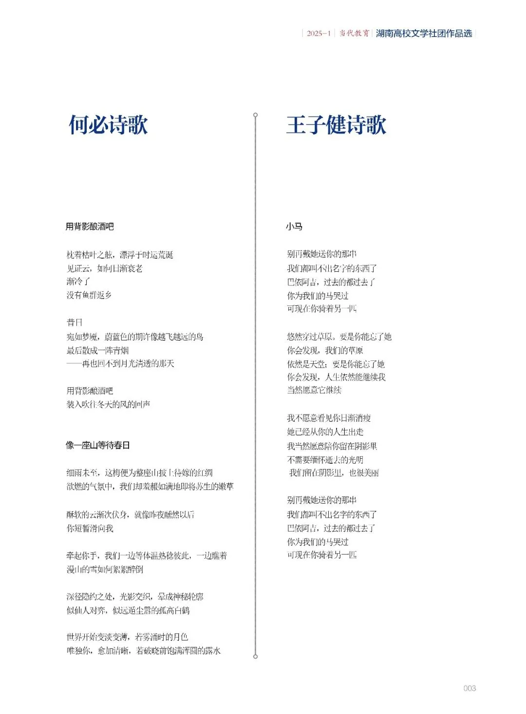 “名隐”诗社是2023年,来自“长沙三校”(湖南大学、中南大学、湖南师范大学)的硕博在读生因共同理念而成立的,一个以湖南大学为核心的跨校文学团体。 “名隐”取义于“隐于名形”,强调隐去浮名,回归文学本真。古来今往,重文者多重其名,难得小隐隐陵薮,大隐隐朝市。“名隐”之志在于:鉴我心、世界心;救我心、救世界心。一年以来,“名隐”成员在《当代·诗歌》《星星》《湖南文学》等各大刊物发表诗歌、散文多篇,屡次在文学赛事中获奖。此外,“名隐”已经举办多次线下活动,比如匿名诗会,累计参与人数300余人;并与各高校积极合作,如参与长沙理工大学的文学对谈等。
