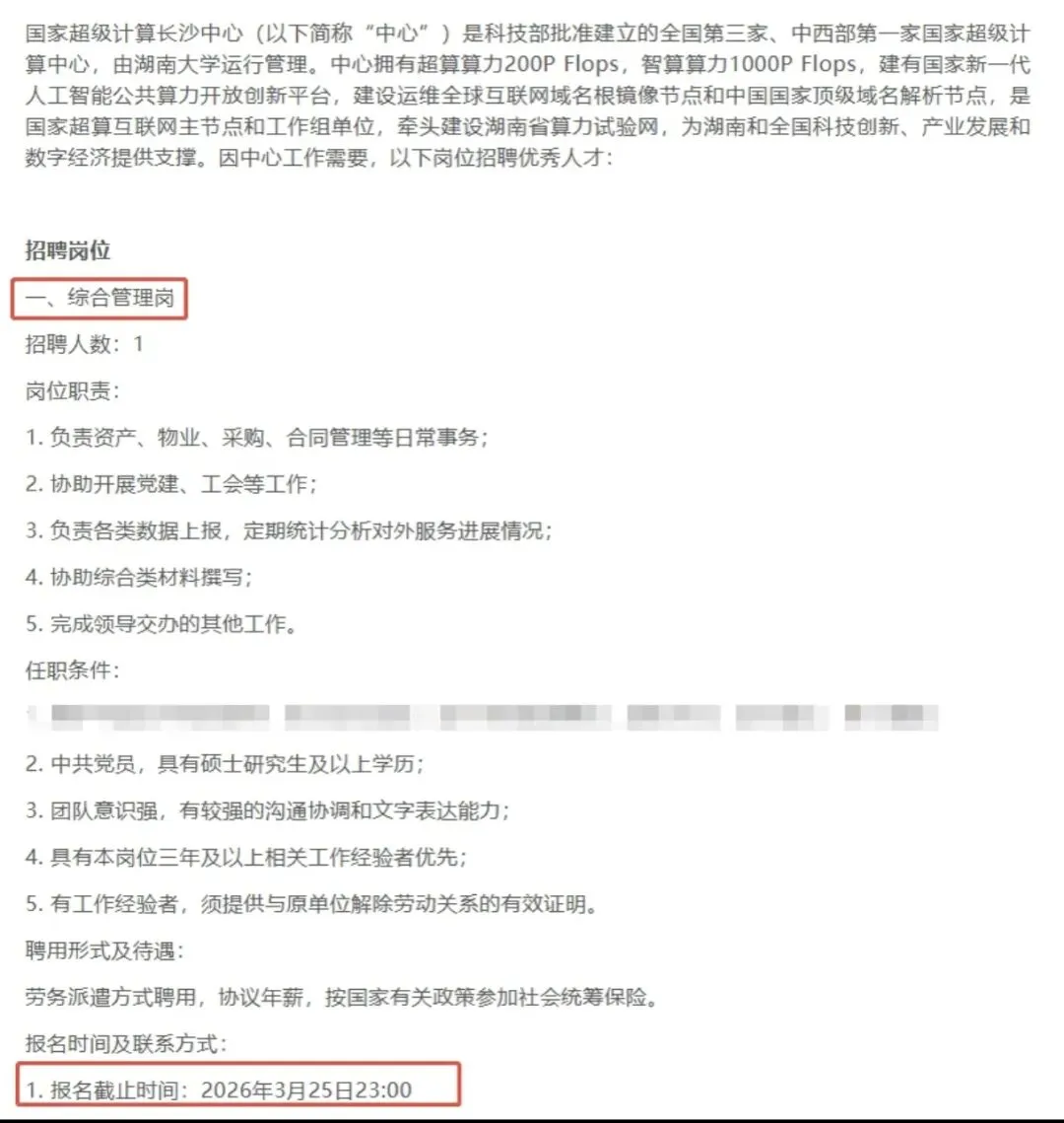湖南大学超级计算长沙中心招聘公告