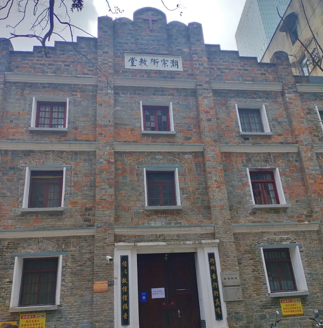 文化书社故址旁,潮宗街教堂、朝宗亭静静伫立,成为古街上一道独特的风景。教堂建于1924年,为长沙市近现代保护建筑,青砖清水外墙,两坡屋顶,方形花岗石柱支撑起高大的厅堂,半拱式门窗做工精美,木构楼梯与地板古朴典雅,中西合璧的建筑风格浑然天成。没有喧嚣的香火,只有宁静的氛围,阳光透过窗棂洒入,光影斑驳,神圣而安详。它与周边的中式民居、历史旧址和谐共生,展现了长沙包容开放的城市品格。朝宗亭位于潮宗古街,挨着潮宗街教堂,地下有抗日防空洞遗址,是一处融合历史、文化与抗战记忆的重要地标。