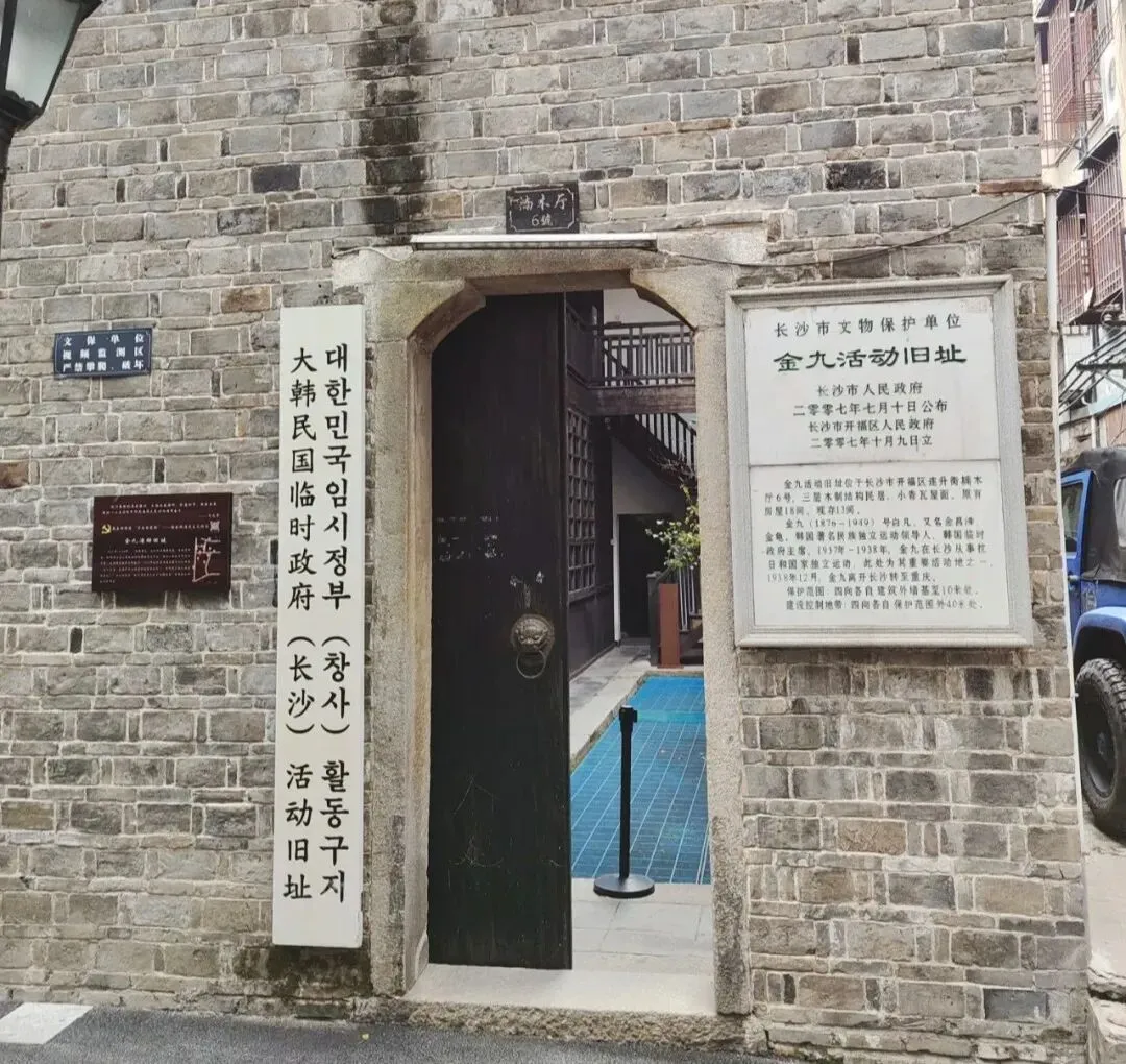 沿潮宗街继续东行右拐,一座青砖砌筑的建筑静静矗立,这便是金九活动旧址,藏于楠木厅6号。上世纪三十年代,韩国独立运动领袖金九先生来到长沙,在此开展抗日复国活动,领导韩国临时政府工作,成为中韩两国人民并肩反抗侵略的历史见证。建筑为民国30年代建成的复合公馆,石库大门内有前后两个小天井,主体二层、局部三层,青砖白粉外墙,内屋纯木结构,木构楼梯与地板古朴典雅,原有18间房间,现存13间,二层设木地板外走廊。1937年上海沦陷后,金九率韩国临时政府成员迁来长沙,这里一度成为其居所,也是朝鲜革命党本部与韩国光复战线三党合一会场驻所 。尤为珍贵的是,这里是1938年金九遇枪击事件受重伤的“楠木厅事件”发生地,当年他在此受伤后,曾前往湘雅医学院救治。2014年修复后对外开放,二楼秘密会议室保留1937年原貌,木质长桌陈列《独立新闻》复刻件,墙上悬挂金九手书“同心同德”匾额,窗台暗格还原情报传递机关设计,被誉为“东亚反法西斯同盟的活化石”。在这里,历史跨越国界,正义与勇气跨越山海,小小的院落,承载着厚重的国际友谊与抗争精神,让潮宗街的历史底蕴更添一抹别样的厚重。