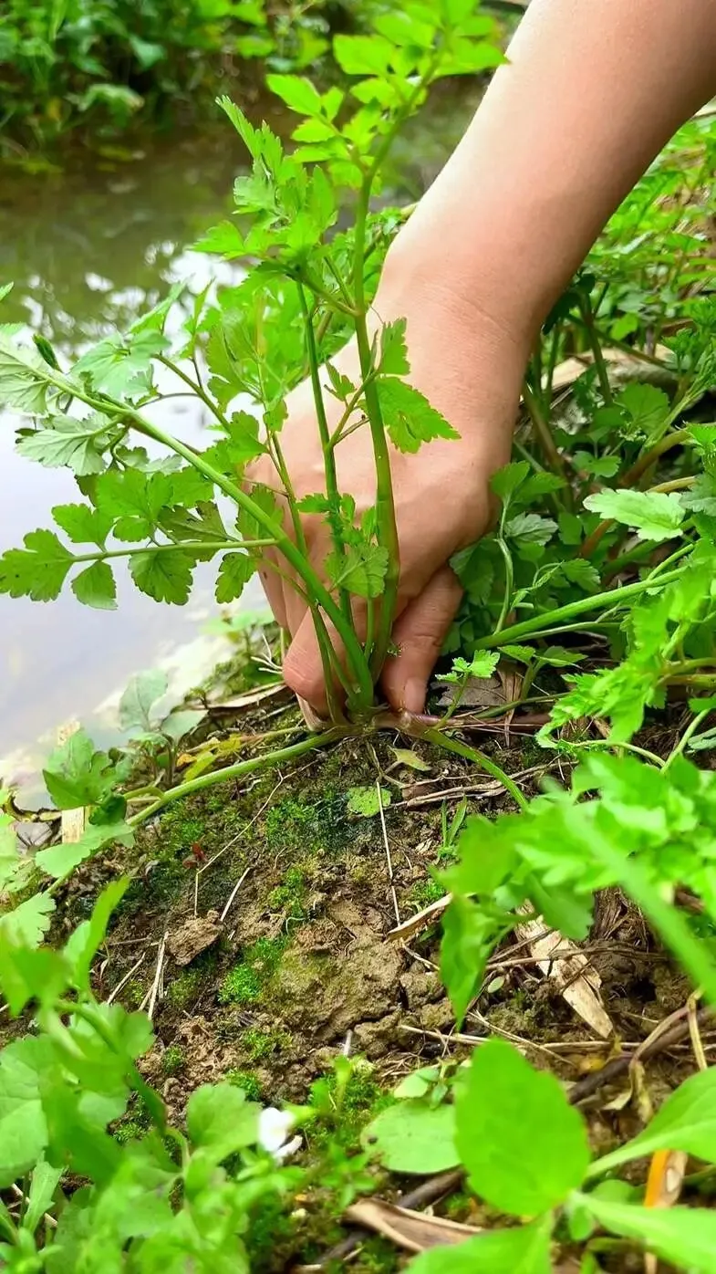 水芹菜:都长在溪边、湿地里,一丛一丛的,吃起来脆嫩没渣,还带着淡淡的清香味,特别爽口