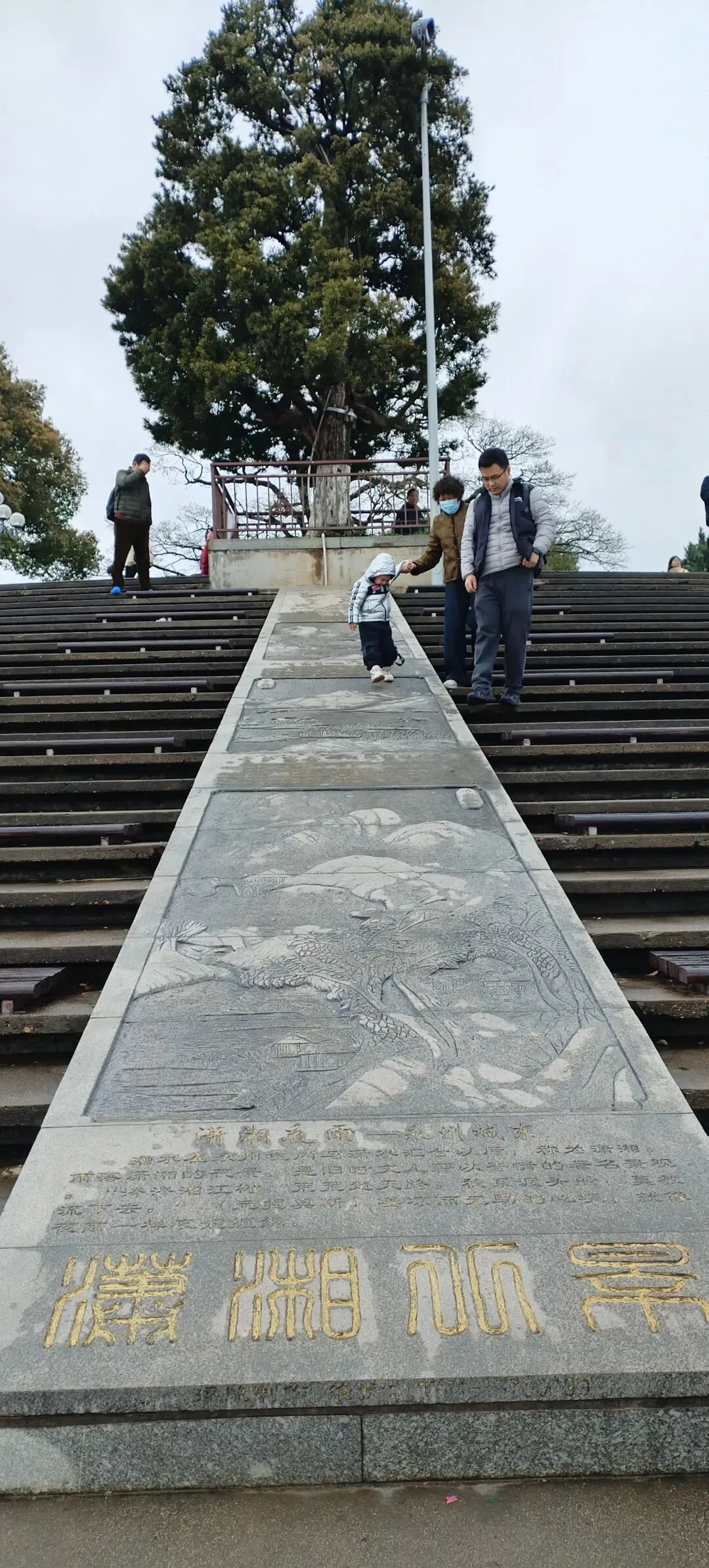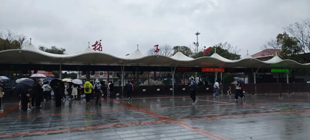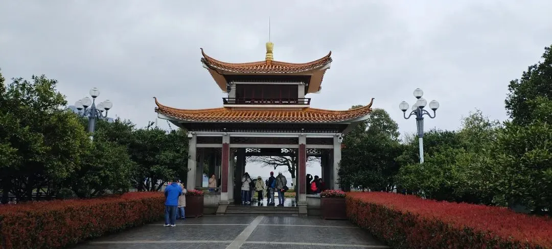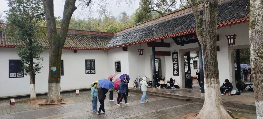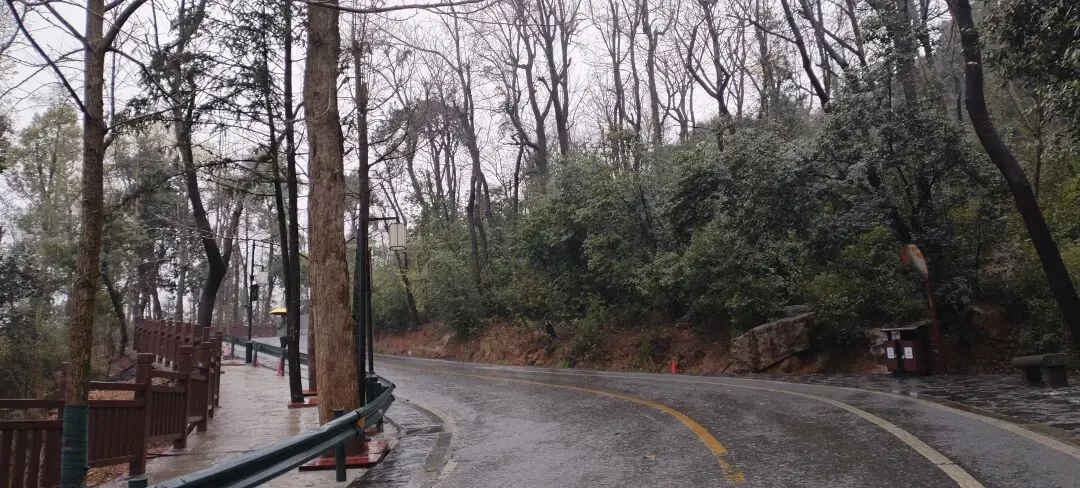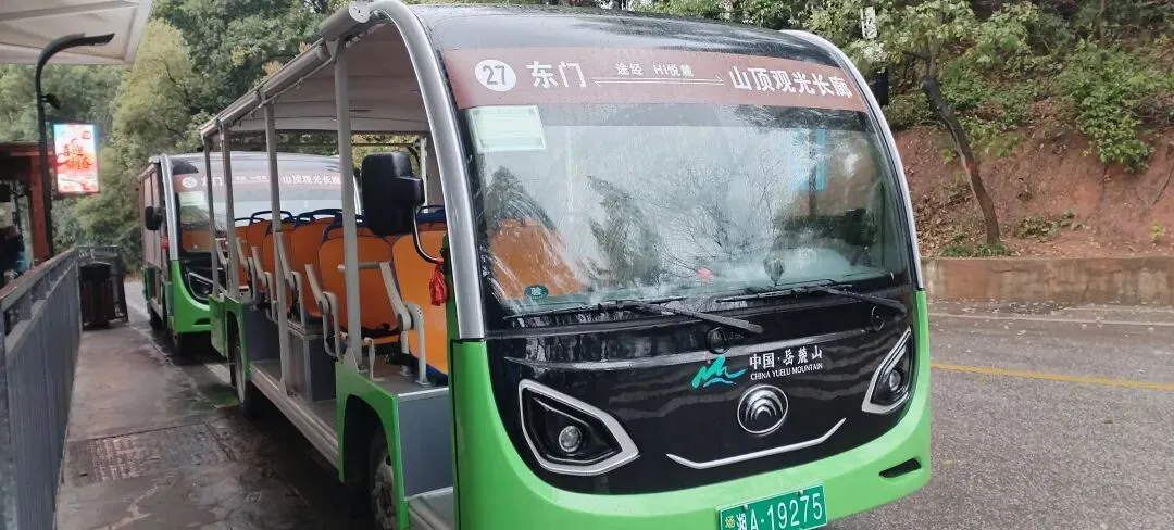 我们是从东门进入岳麓山景区的,此时正在下雨,因此我们乘坐观光车至山顶。