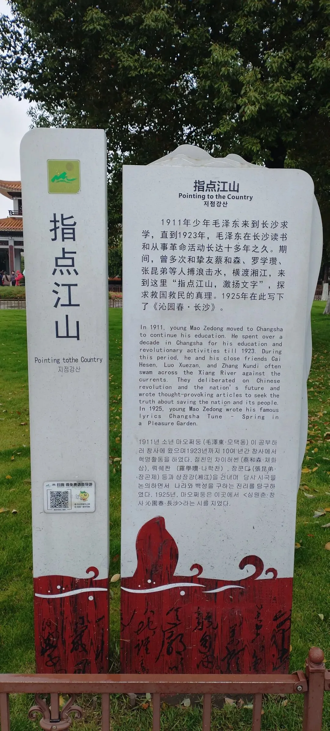 独立寒秋,湘江北去,橘子洲头。
