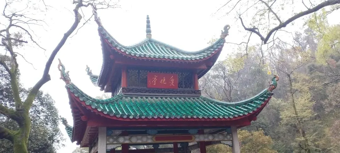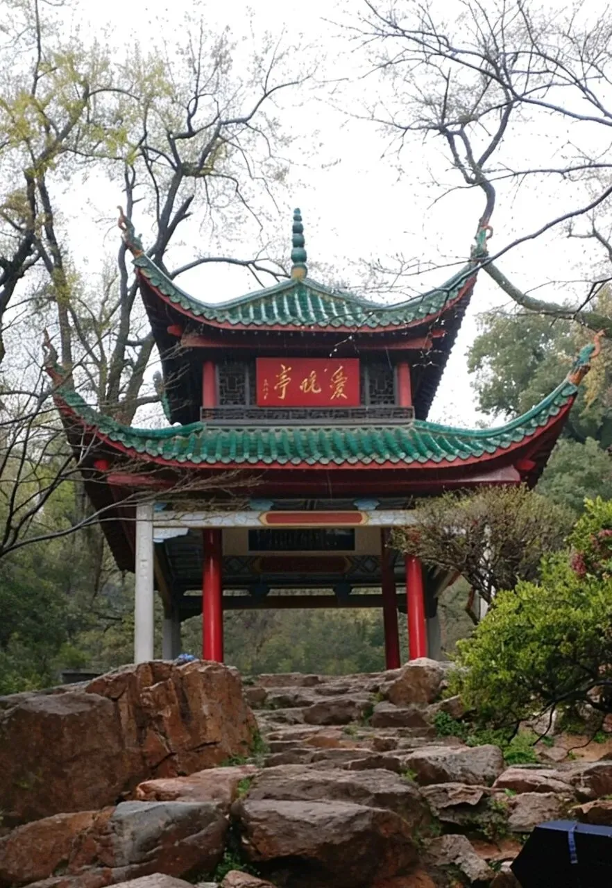 ,中国四大名亭之一,是岳麓山最著名的景点之一,因唐代诗人杜牧《山行》诗中"停车坐爱枫林晚,霜叶红于二月花"的意境而得名。