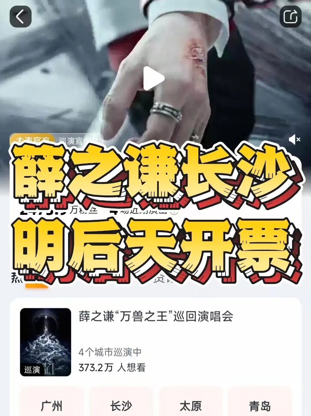 #薛之谦 长沙站二开时间!错过本次机会大腿要拍肿!