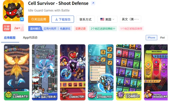 等模型跑通后,迅速再调转枪头,推出IAP版本的《Cell Survivor》冲向海外。