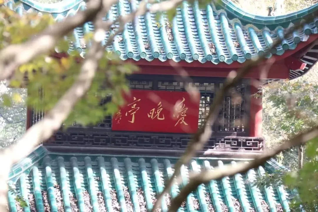 隔天,前往岳麓山--行至爱晚亭,眼前景致瞬间攫住目光。这座清建亭子飞檐翘角古朴典雅,掩映一片红枫中,恰如杜牧“停车坐爱枫林晚,霜叶红于二月花”的诗意具象。坐亭中看枫叶在风中簌簌飘落似红雨纷飞,听山风穿过林梢轻吟,仿佛时光都慢下来。