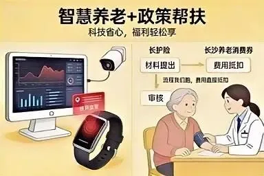 智能设备实时监测长辈健康数据,异常情况及时预警;全程协助办理长护险、长沙养老消费券,流程我们跑,费用直接抵扣,悄悄减轻家庭养老负担。