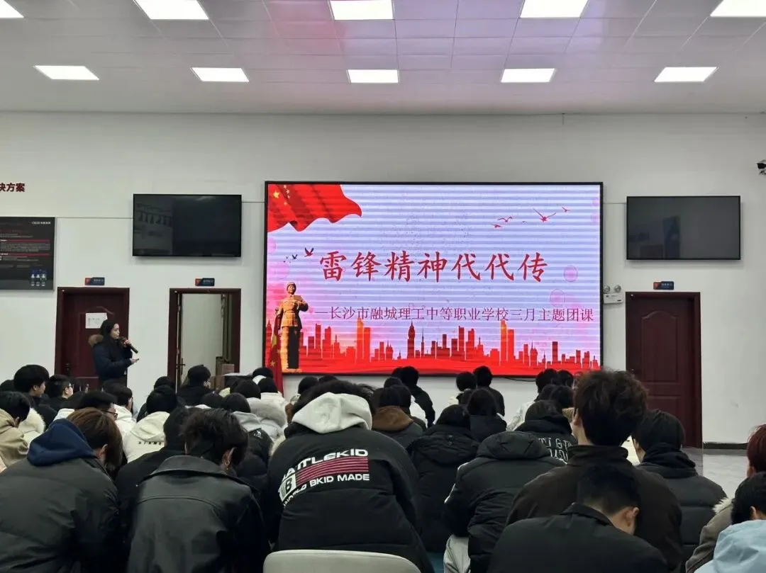 为深入学习贯彻雷锋精神,引导广大团员青年坚定理想信念、厚植家国情怀、践行责任担当,3月18日,长沙市融城理工中等职业学校团委以“雷锋精神代代传”为主题,开展了一场别开生面、内涵深刻的三月主题团课。全体团员共同回望雷锋生平、感悟精神内涵、明确践行方向,让雷锋精神在青春岁月中薪火相传、熠熠生辉。