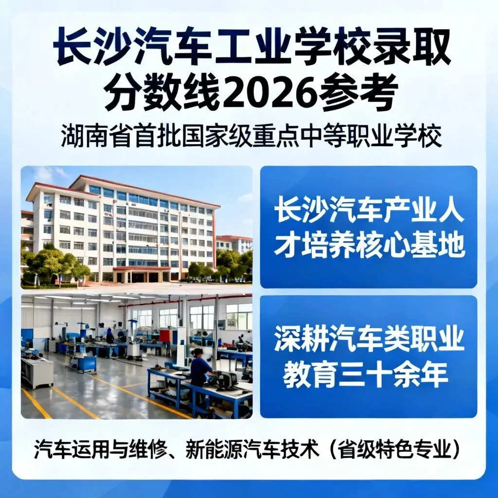长沙汽车工业学校是湖南省首批国家级重点中等职业学校,也是长沙汽车产业人才培养的核心基地,深耕汽车类职业教育三十余年,依托本地汽车制造、服务集群的产业优势,打造了汽车运用与维修、新能源汽车技术等省级特色专业,是不少立志扎根汽车行业的初中毕业生的首选院校。2026年的录取分数线尚未公布,但结合该校近年招生数据、长沙中考政策走向及行业人才需求,可从多维度梳理出具有参考价值的方向。