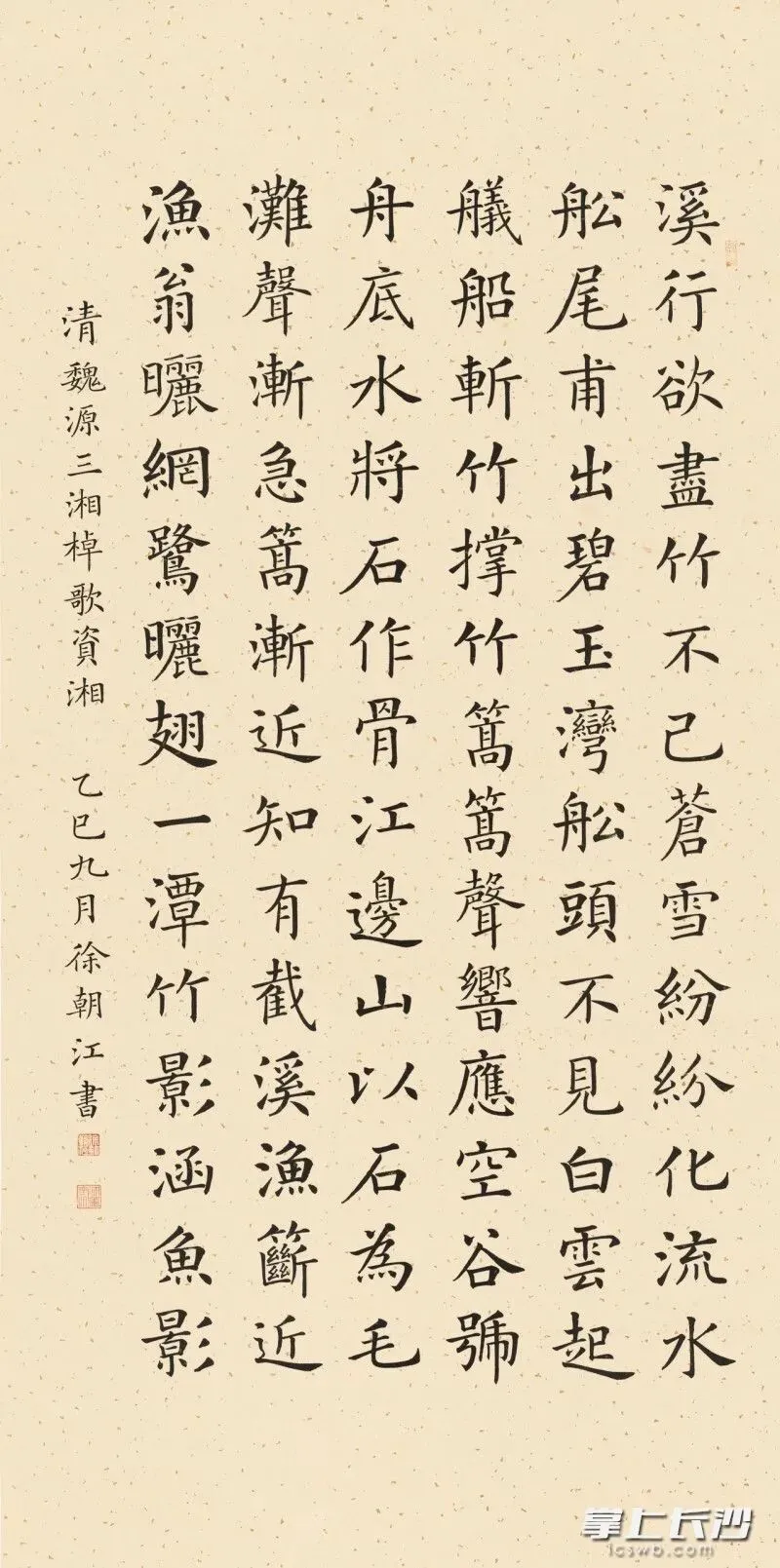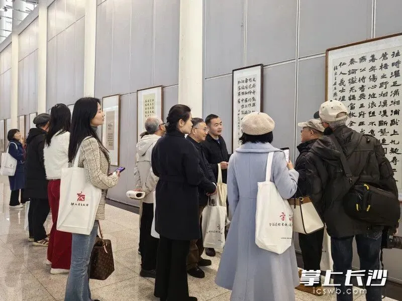 “以历代名人咏颂湖湘的经典诗文为题材进行创作,既是对书法正脉的传承,也是对湖湘文化的致敬。”来自石家庄的参展书法家李凤刚在现场感慨道。