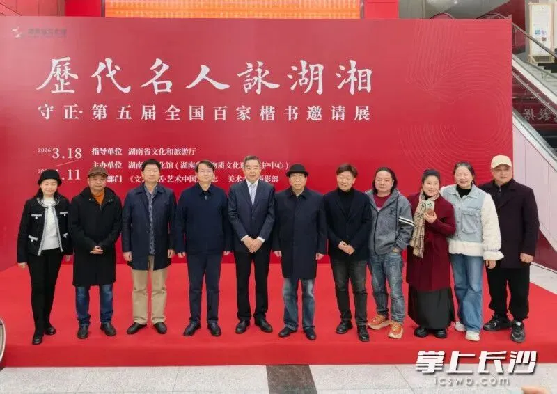 长沙晚报掌上长沙讯(全媒体记者 肖舞)3月18日上午,湖南省文化馆翰墨飘香,来自全国各地的100位楷书名家,以笔为媒,以墨为韵,共同开启了“历代名人咏湖湘——守正·第五届全国百家楷书邀请展”的大幕,300余人参加开幕式。这不仅是一场书法艺术的盛宴,更是一次用楷书正脉对话湖湘文脉的深度探索。