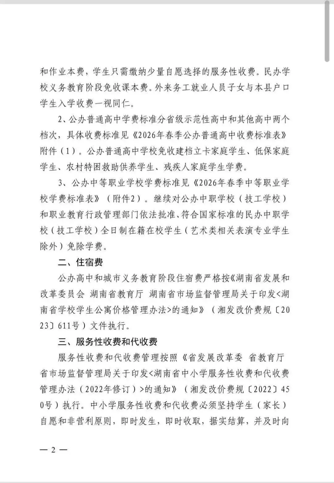 2026年春季开学收费文件