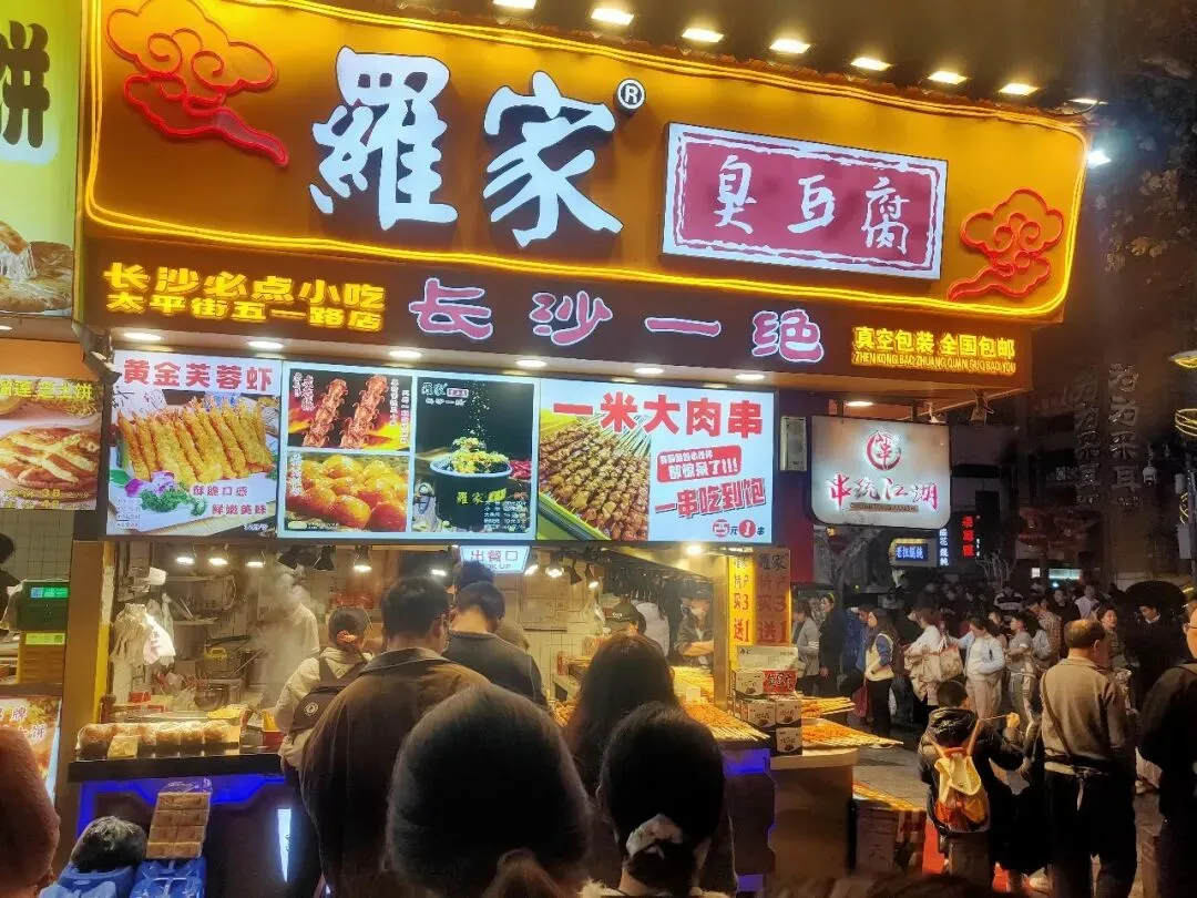 晚上到太平老街吃小吃。街口的罗家,不光有臭豆腐,还有大肉串,一米长的。