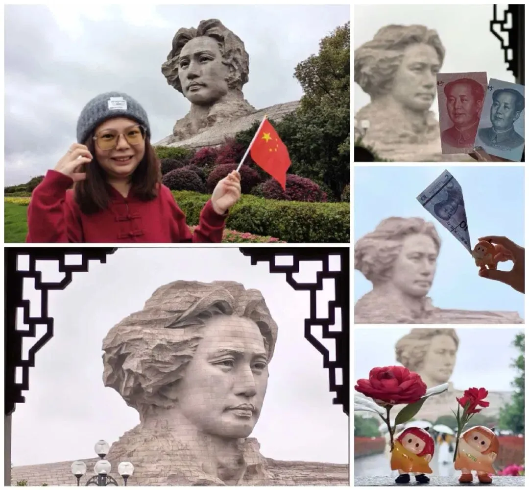 这几天的长沙,雨下个不停,有点像苏州的梅雨季。也正因下雨,我们到橘子洲几乎没排队,直接坐上小火车。真心提醒:不要买小火车往返 + 岳麓山联票,岳麓山那站是东门,不是更好逛、更出片的南门。乘坐小火车到达后在橘子洲各种拍照打卡,闺蜜真的太会拍了,把每个人都拍得又高又好看。拍完人拍 YOYO,摆姿势、找角度,全员满意,疯狂出片。返程时才发现我们有多幸运 ——刚拍完,人流就涌了进来,就算下雨,长沙的人气也一点没减。