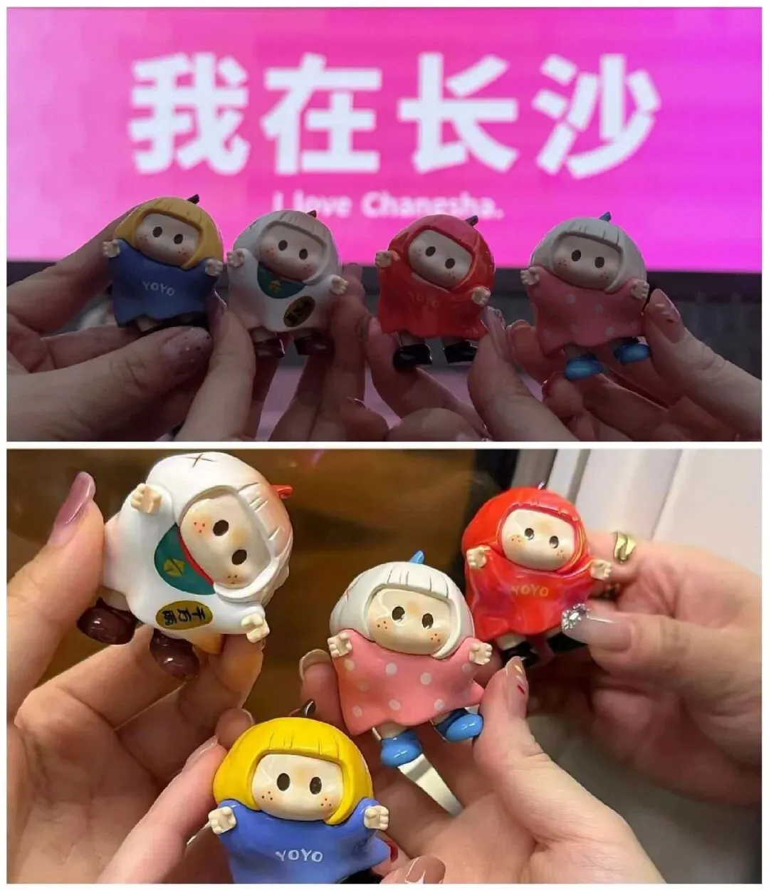 本次长沙特产:名创 YOYO 酱。这次长沙之行,我们带的特产有点特别 ——名创优品 YOYO 酱。饭后在五一广场、国金街闲逛,心心念念想找一直没买到的 YOYO。先在负一楼抢到一只,下去负二楼时,被眼疾手快的闺蜜一声喊住:“佳伟!”四个人一拥而上,一口气拿下 9 只。买完去茶颜悦色就拿着yoyo拍照啦。