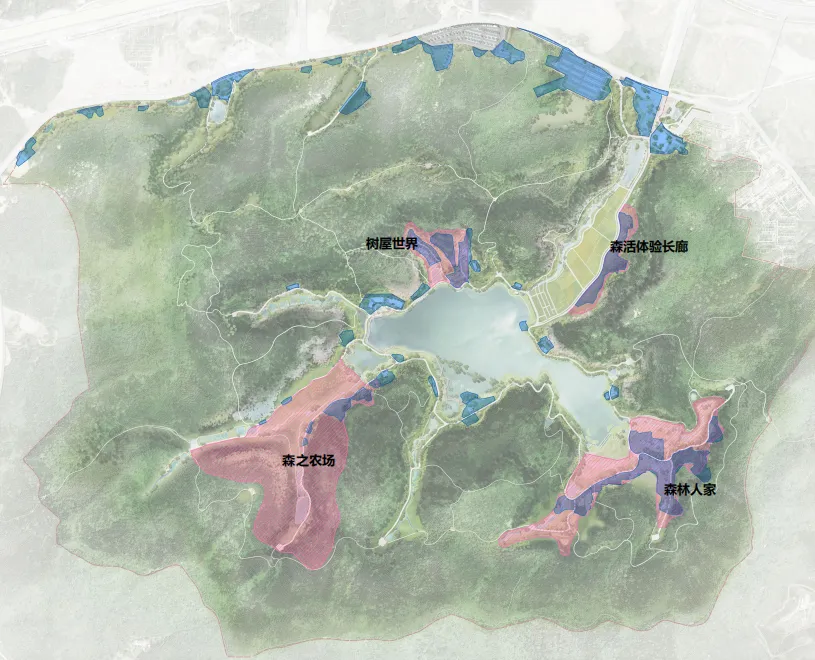 本项目拟建范围面积为344.82公顷,范围内包含一座小(1)型水库,工程设计包含水系修复工程、植物修复工程、森林防火道路工程、巡护步道系统、生态科普建筑工程、配套基础设施等。
