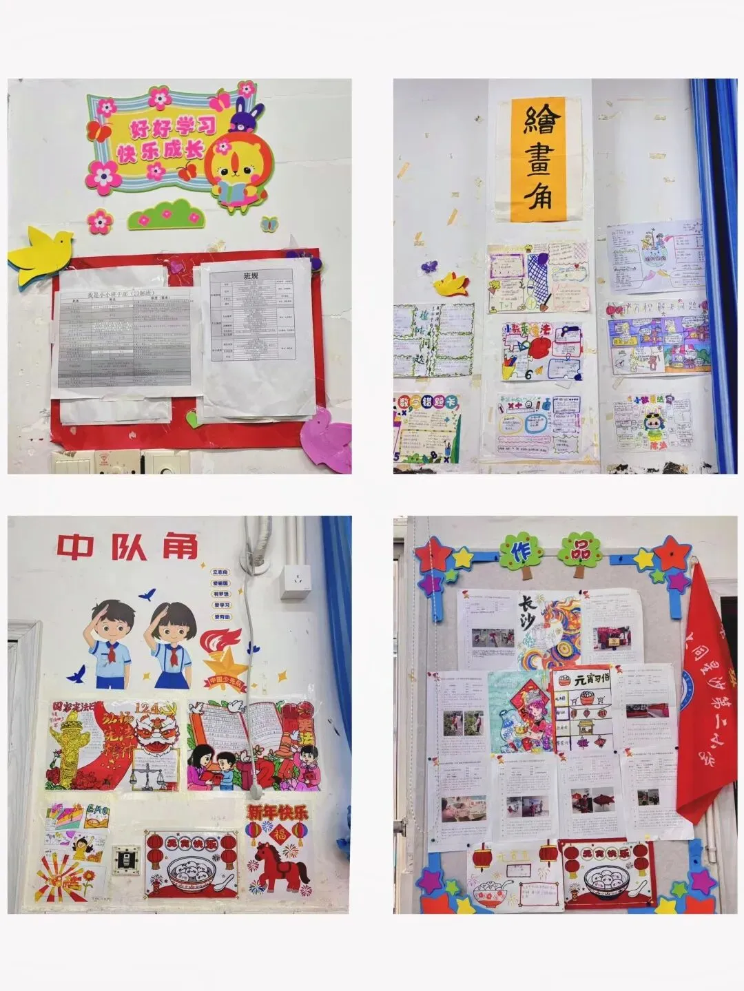 不少班级更是亮点纷呈,打造出独具特色的班级文化阵地。2101班的读书主题、2102班的春节与心理能量杯主题、2402班的剪纸主题文化墙,融知识性与趣味性于一体;2102、2103等班级的图书角布置精美、书籍丰富,成为学生遨游书海的小天地;2104、2107等班级劳动工具房摆放有序,班务栏、中队角打造用心,细节处彰显班级管理的用心。2505、2503、2304、2008等多个班级更是全方位做到优秀,教室卫生洁净、各类布置规范有序、文化氛围浓厚,让人眼前一亮,成为本次评比中的标杆班级。