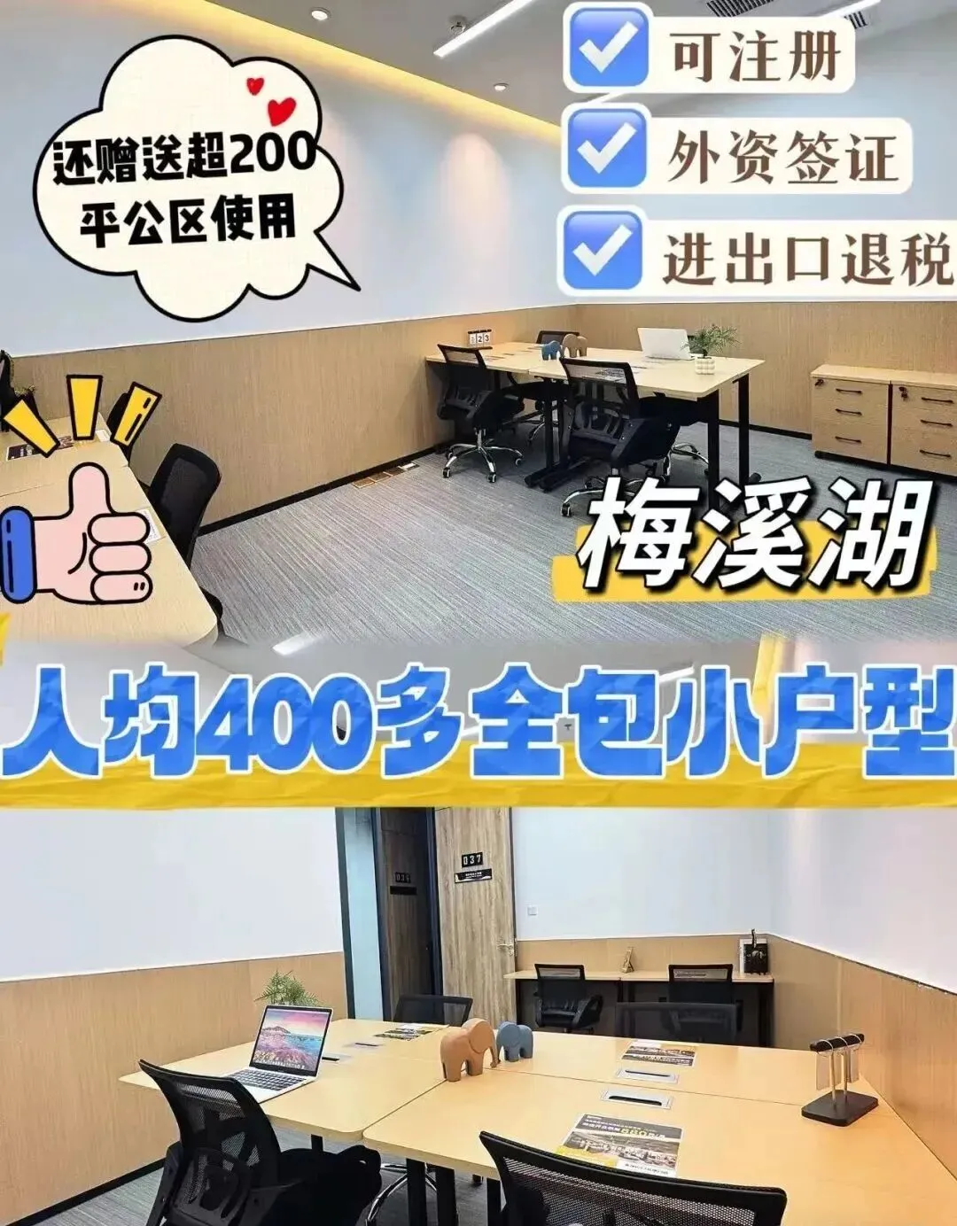 🏢 舒适办公: 独立私密办公室,可注册公司、可银行开户,手续齐全合规,创业第一步稳扎稳打!