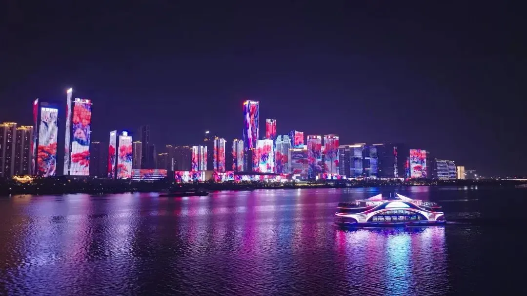 乘湘江游轮,解锁水上观景新体验,夜幕中尽览长沙“一江两岸”灯光秀与山水洲城交融的璀璨盛景。