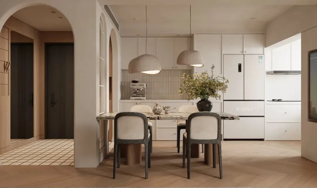厨房不再是孤独的「Battlefield」,而是情感交流的「Heart of the Home」。开放式厨房+岛台餐桌,创造了「Social Kitchen」的新可能。做饭时,抬眼就能看到爱人的笑脸;洗菜时,转身就能和孩子互动。这里,是家的另一个「Central Point」。03 / Transition