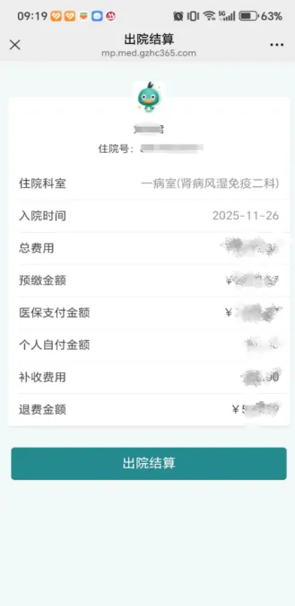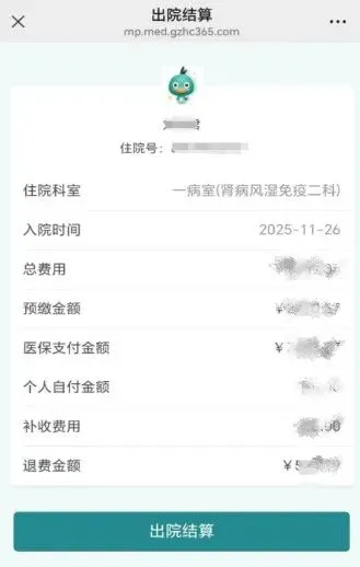 1.线上出院结算补款仅支持微信支付,结算退款适用于微信和支付宝退款,若提示不能办理,请至人工结算窗口办理出院手续。