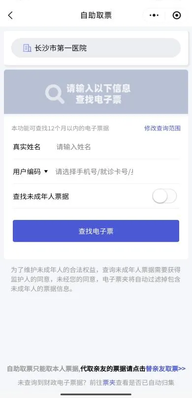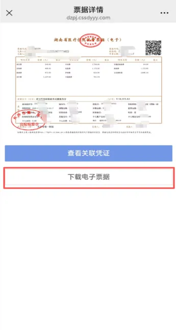 关注医院服务号,点击右下角“更多服务”-“电子票夹”,按要求登录成功后选择“自助取票”,正确输入患者信息即可查找电子票。电子票据下方点击“查看关联凭证”,获取费用清单。