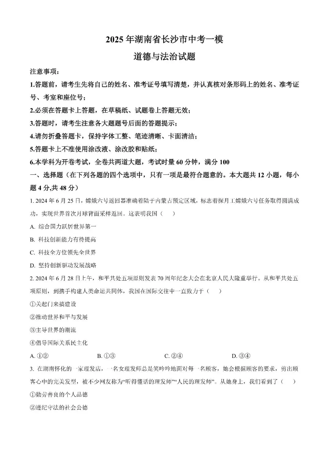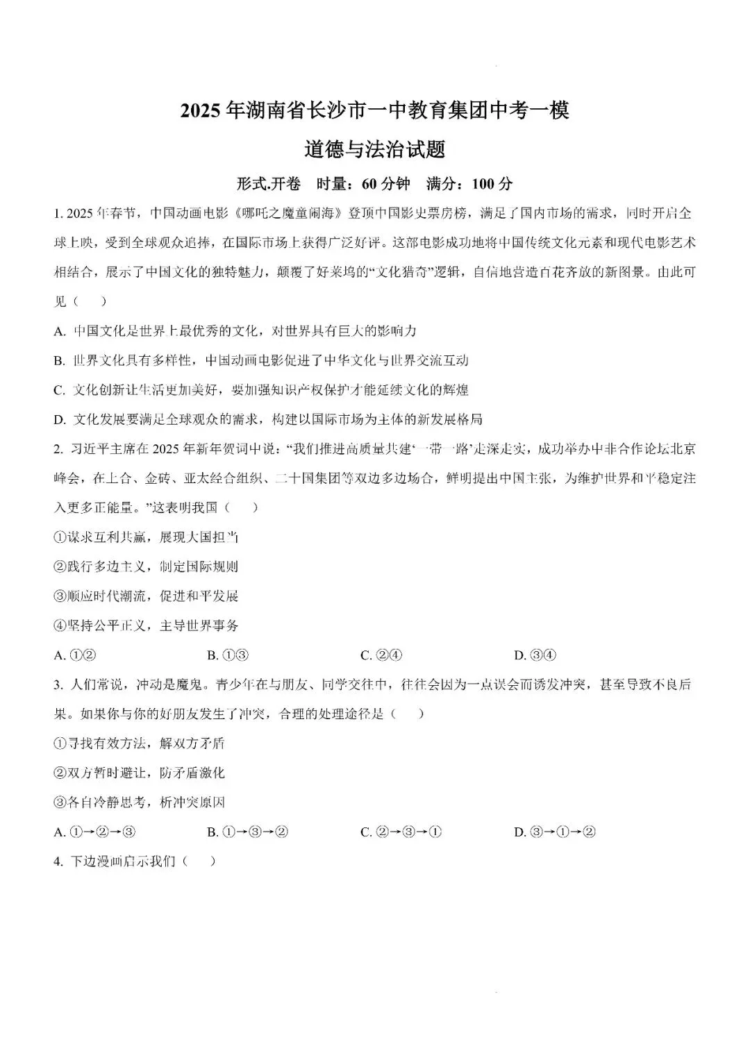 【真题汇总】——2025年长沙九年级下册中考一模物理试卷+参考答案(免费领取)