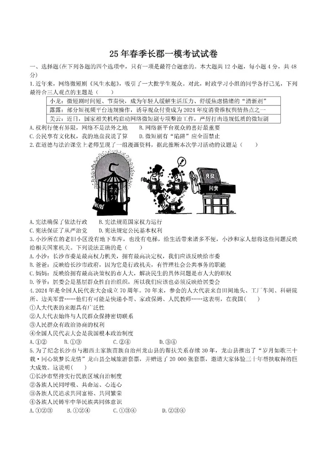 【真题汇总】——2025年长沙九年级下册第一次语文检测试卷+参考答案(免费领取)
