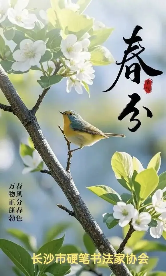 夫春分者,承仲春之淑气,启万物之生机。天地以中和为道,笔墨以气韵为神。长沙硬笔书协,秉传承之责,守正创新,挥毫寄兴,写山河之秀色,抒时代之清欢。愿以楮墨为媒,会春风、结雅缘,扬中华文脉,传翰墨馨香。