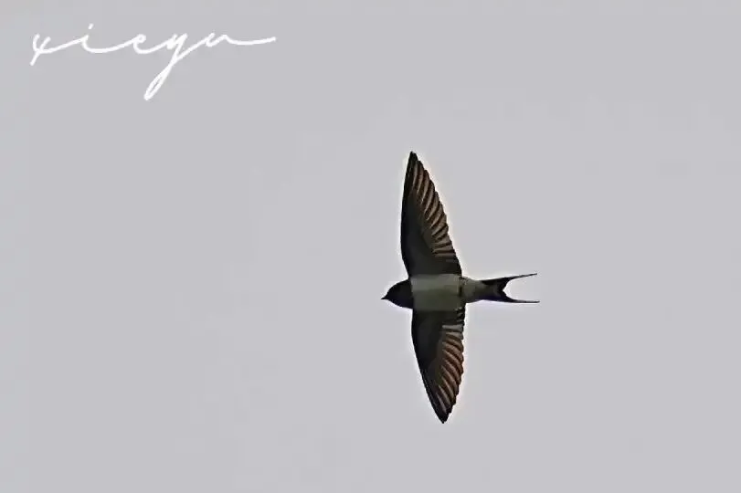 照片里,一只家燕在空中翻飞,黑背白腹,尾巴像剪刀。虽然背景是灰蒙蒙的,但那几只燕子一出现,整个画面都活了起来。