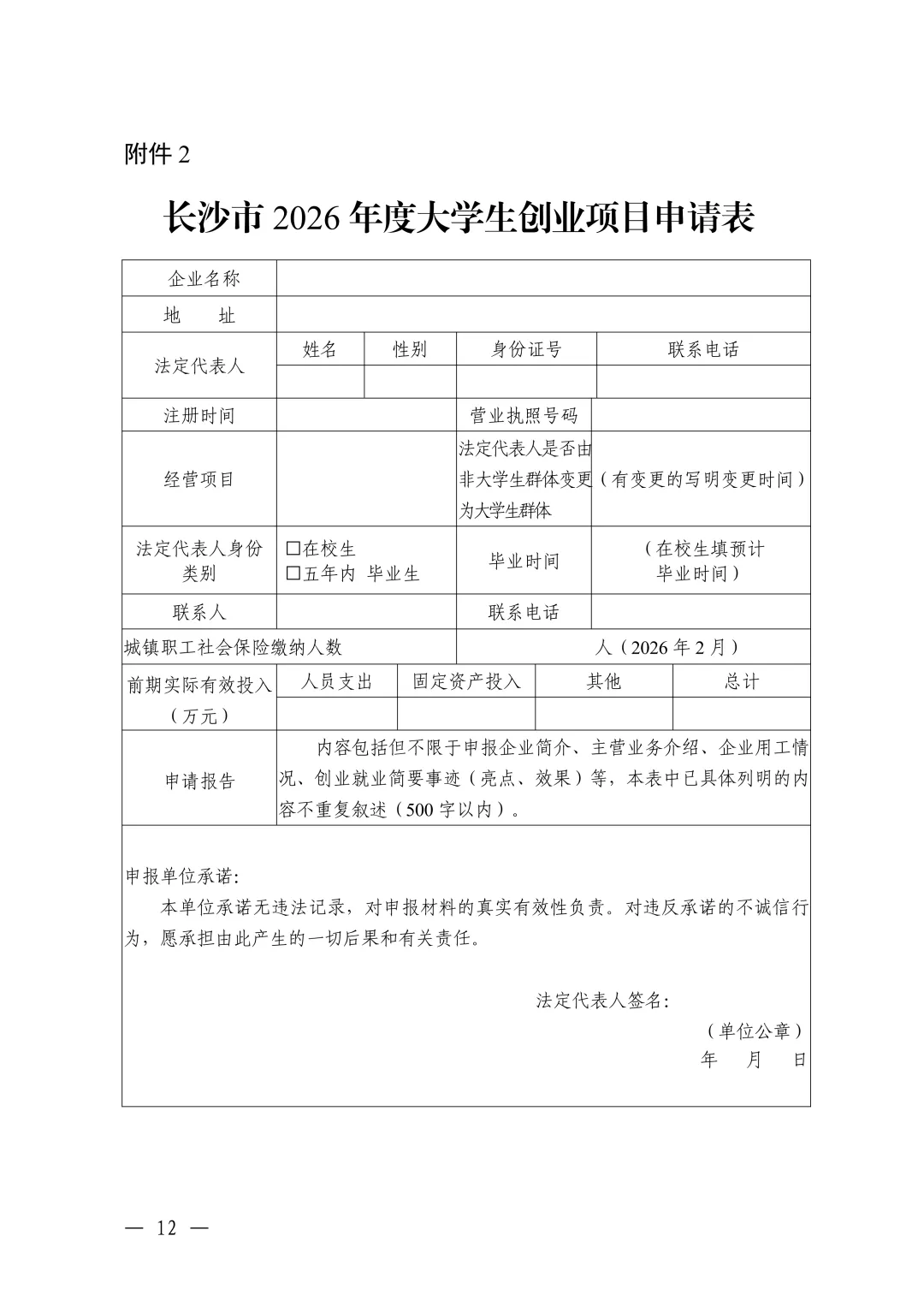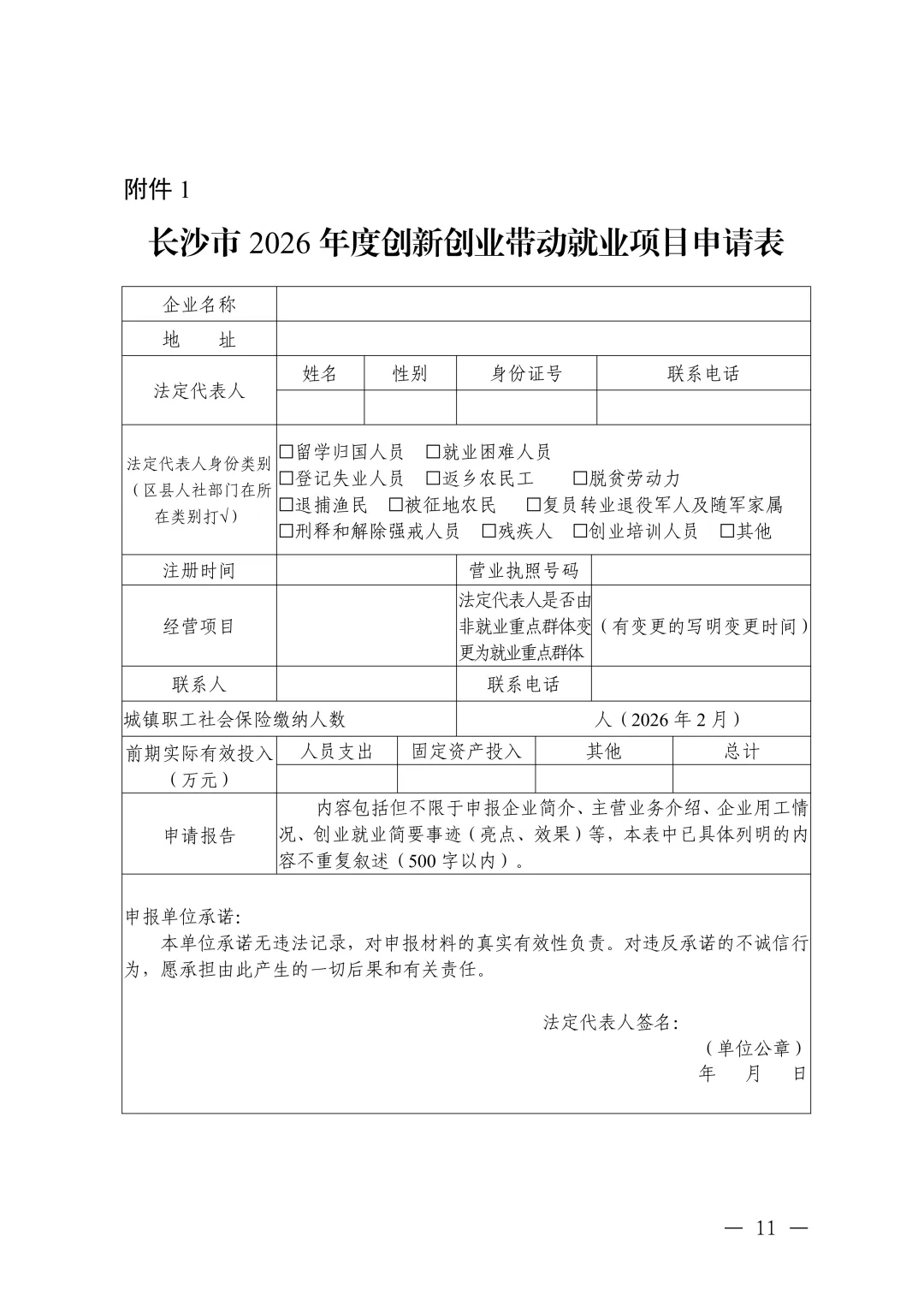 1、《长沙市 2026 年度创新创业带动就业项目申请表》(见附件 1);