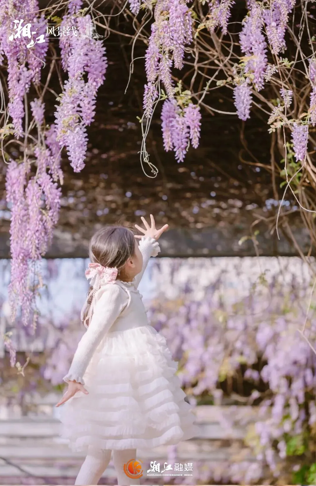 天空都被染成葡萄味的了一串串紫藤像会发光的风铃人在花下走