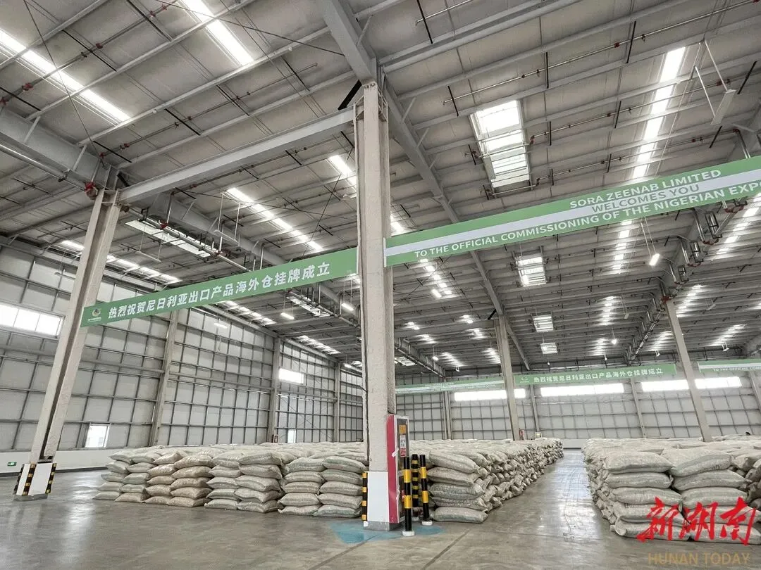 此次落户于长沙市雨花区电子商务物流中心的海外仓是该国在东亚地区唯一的出口产品海外仓,首期仓库面积4000㎡,可储存货物8000吨。作为6月第三届中非经贸博览会预热活动的重头戏,此举将促进中国与尼日利亚贸易便利化,带动尼日利亚腰果、木薯、芝麻、高粱、干姜等优质农产品“入湘”。