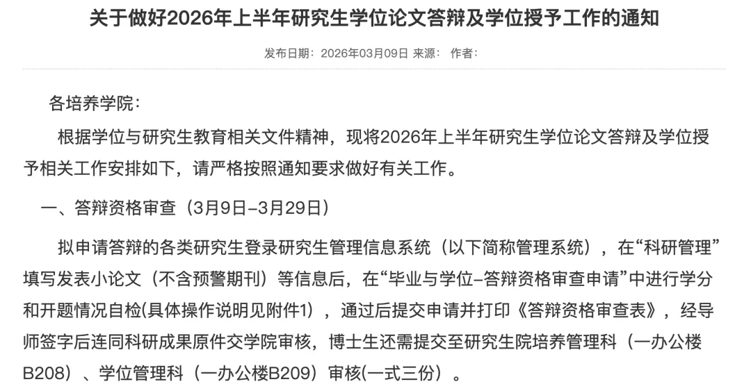 但就在大家忙得焦头烂额的时候,长沙理工大学研究生院悄悄扔下了一枚“重磅炸弹”——《关于做好2026年上半年研究生学位论文答辩及学位授予工作的通知》。看完这份足足排满好几页纸的红头文件,作为过来人的学长只能感叹一句:今年的毕业门槛,不仅变高了,而且卡得是真严啊!