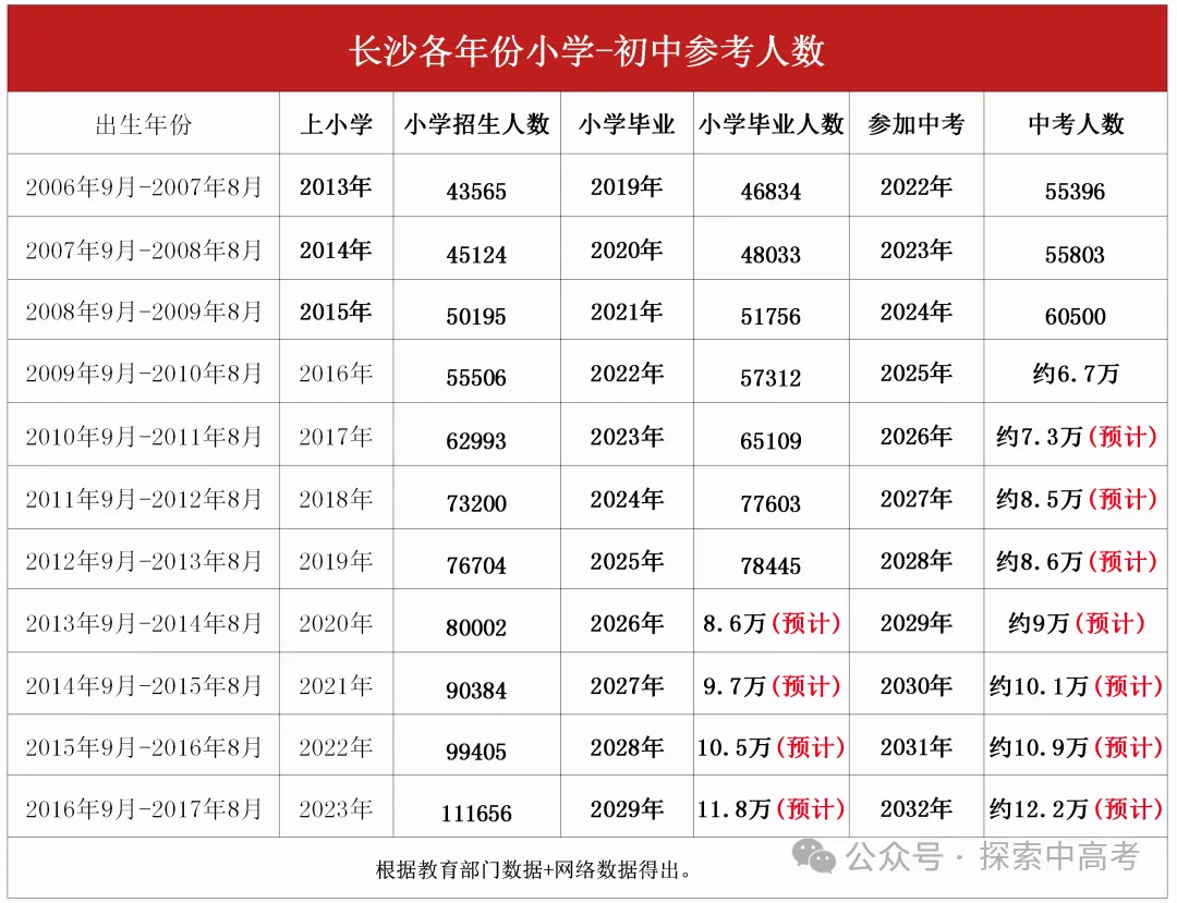 2010-2018 年的生育高峰,直接影响着当下的升学格局 ——2025 年升入初中的孩子,大多是 2012-2013 年出生的群体。结合长沙此前小学入学人数的推算数据,未来几年小升初人数仍将保持持续增长态势,这场升学 “洪峰” 的顶峰预计将在 2029 年到来。