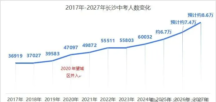 2020 年至 2025 年,长沙城区小学毕业生(含外地回长)总人数激增超 3 万人。这一数据变化直观表明,小升初的竞争门槛在短短数年内被显著拉高,升学赛道的拥挤程度已然升级。