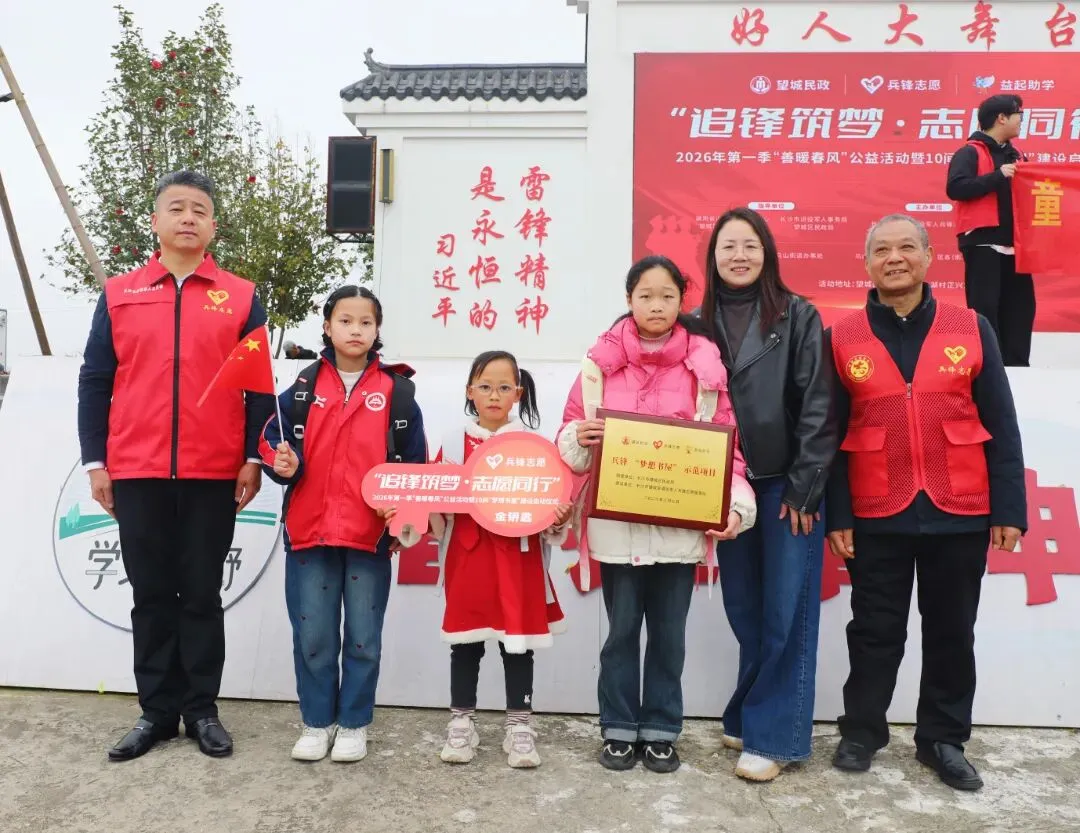 长沙市老兵宣讲团坚持以讲促行、以行践诺,同步开展学雷锋志愿服务。宣讲团秘书长朱亚杰、讲师高国良携手望城区退役军人兵锋志愿服务队在长沙市望城区正兴文苑开展“梦想书屋”建设启动仪式,活动现场为书屋授牌、授钥匙,并向16名困难儿童发放了爱心助学金和学习用品。受助学生代表动情地说:“梦想书屋改变的不仅仅是我的物理空间,更是我的精神世界。如今我也加入了学校的志愿服务队伍,从受助者变成了助人者。我要以雷锋同志为榜样,去温暖更多需要帮助的人。”