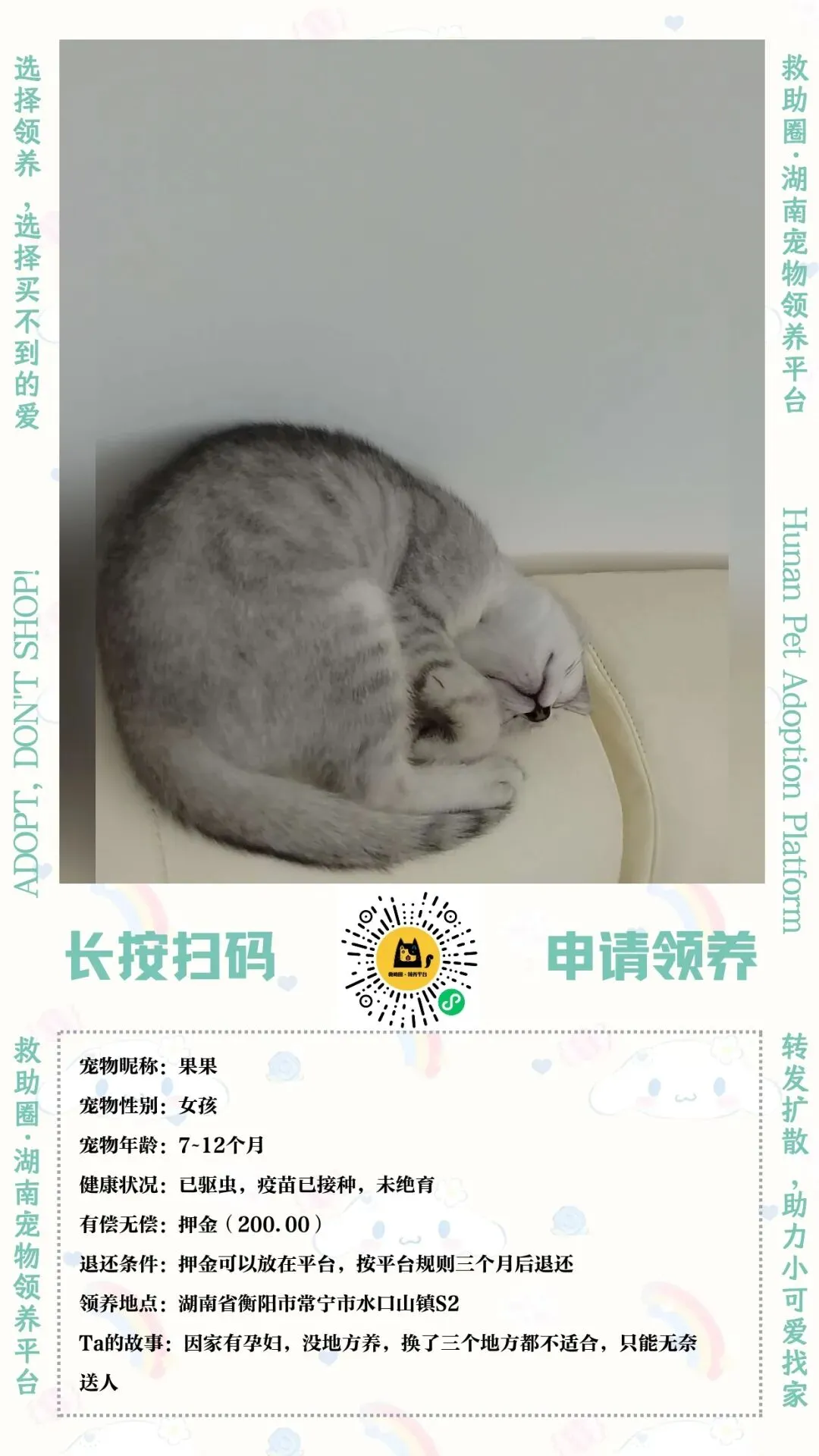 *注:以下领养须知为平台意见仅供参考,具体领养要求依据送养人而定。