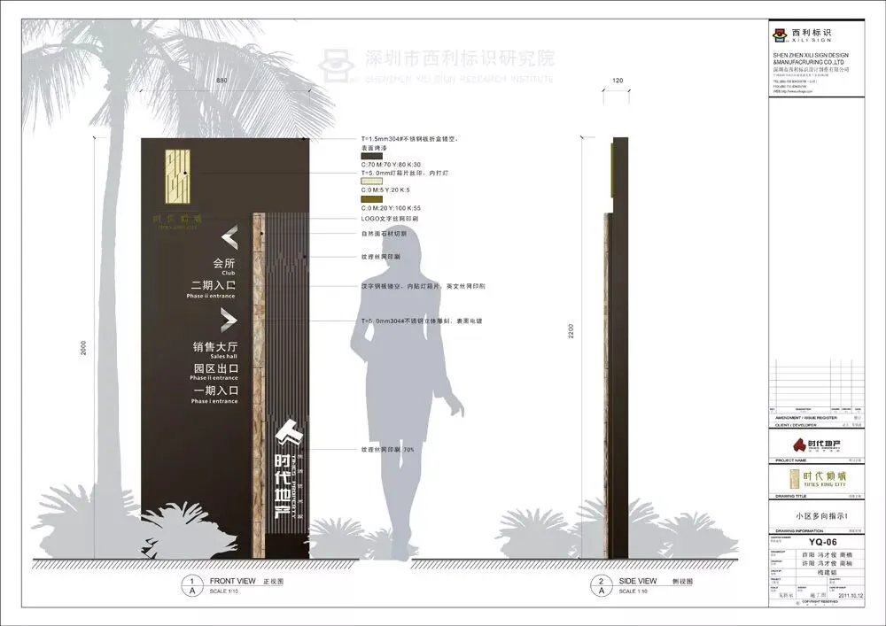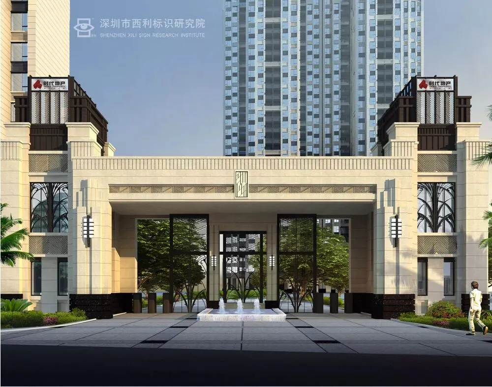长沙时代倾城是一个ART-DECO建筑风格的中高档住宅区,项目的标识系统的设计在于要以自然为主要的依托对象,先从环境入手,了解当地的气候景观变化,植物的种类颜色,以及它们在未来的长势和其他情况。其次是要寻求与建筑上的协调统一,利用建筑面的造型,形式,组合方式,在标识造型的设计中建议分析和运用,让标识在实用的同时也能给人美和凸显出本项目风格的代表性,让业主迈入的第一步就从标识的形象上得到归属感。