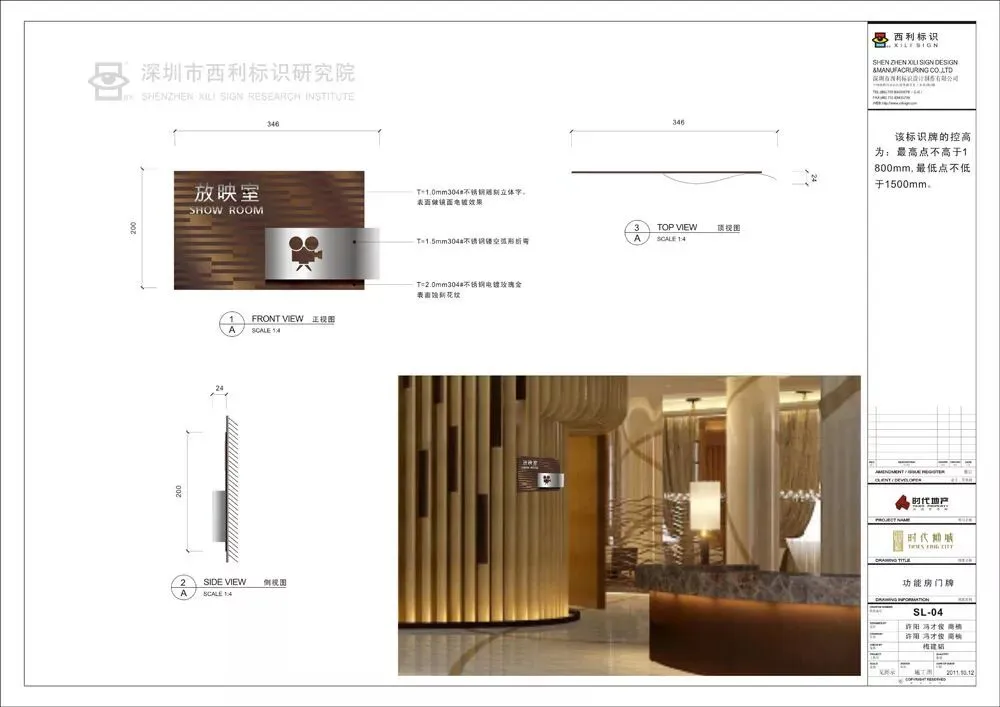 西利标识在园区的标识系统设计时,色彩取自建筑深咖啡色,该色彩与景观配合相对协调,符合长沙四季景观的变化。并通过灯箱效果来体现夜间莹莹灯光的浪漫气息。造型上与建筑理念相结合,采用直线简约,在花纹的处理上,将建筑抽象处理,并加入音乐变化的涨幅,来增加设计感。整体设计不但简洁大方,又赋予了许多的细节和动感,看上去稳重而富有现代感。