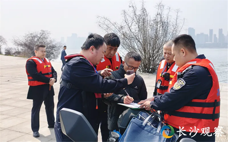 ▲2026年3月12日,渔政执法人员在长沙滨江文化园河岸开展巡查和执法。(剑裘 摄)