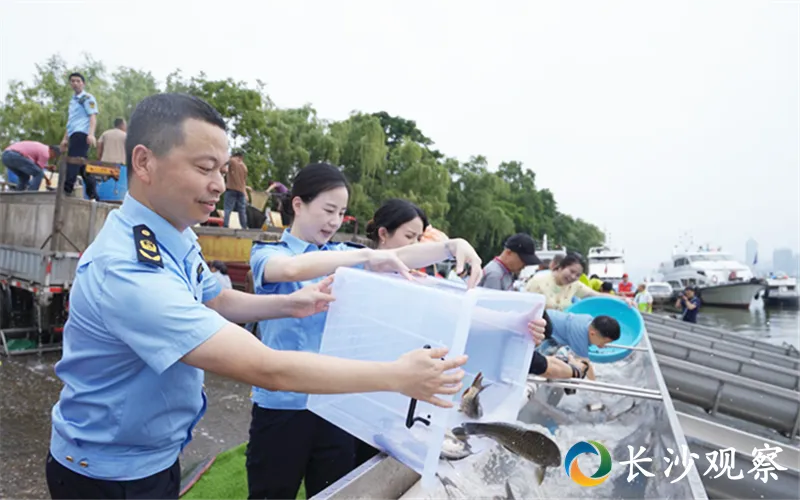 ▲2025年6月,长沙市在橘子洲公园战备码头开展增殖放流活动。