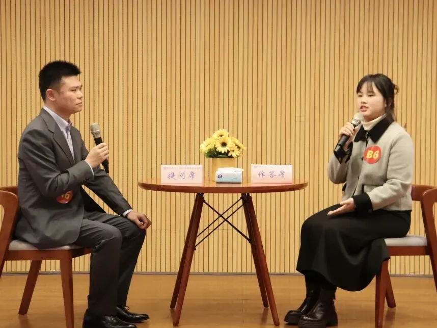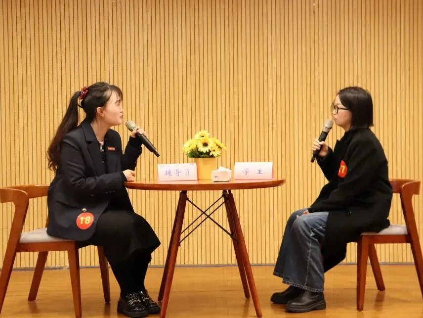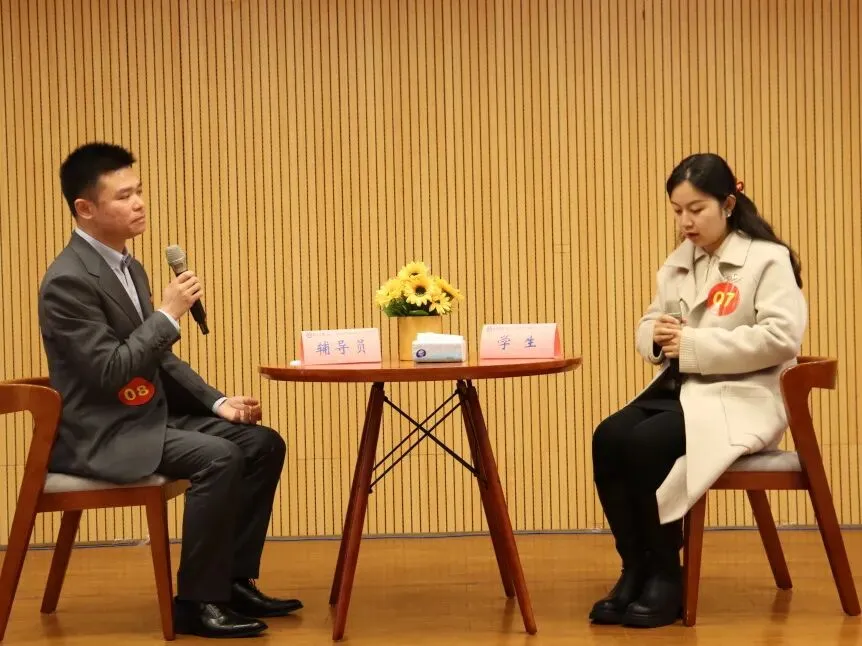 复赛开展的是“谈心谈话”,26名参赛辅导员组成 13组,两两一组分别扮演“辅导员”与“学生”,围绕学生安全教育管理、就业指导、寝室人际关系等主题,开展沉浸式对话并进行总结梳理,重点考察辅导员在日常思想政治教育中的专业素养与实践能力。