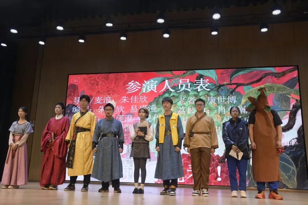 盛唐八品小吏李善德,曾为千里送荔枝跋山涉海;千年后的舞台上,他却与现代青年麦浪意外相逢。这次,迎来的是全新的李善德。K2402班的《踏山负荔,万壑留香》,让古今小人物的孤勇在时空交错中相互映照,借一颗荔枝折射千年未变的生存智慧与人性微光。