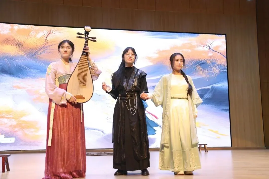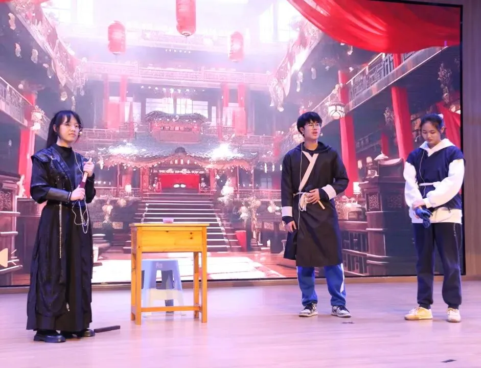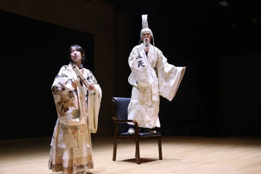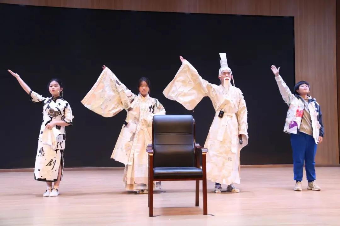 K2403班独幕剧《椅子》以彼得·布鲁克的“空的空间”为理念,回归戏剧本真。通过一把椅子与元叙事结构,让课本人物屈原、杜丽娘、周繁漪跨越时空相遇。当屈原的孤忠、杜丽娘的热望、周繁漪的压抑在此交织,不断叩问:在时代洪流与宏大叙事为每个人命名的世界里,你所选择的位置是否真实?这是关于自我与时代的深刻对话。