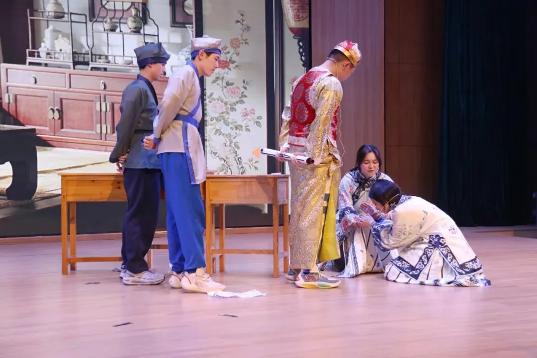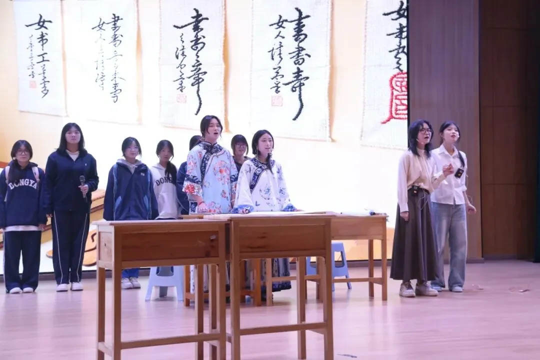 当现代民俗学习者与清代女书传人穿越百年相遇,K2410班《墨痕流转》以一场跨越时空的对话,再现了女性专属文字——女书的传承之路。舞台上,两代女性以笔墨相连,让观众见证了那些曾被隐秘传抄的文字如何冲破时光阻碍,在当代重焕生机。女书,这朵绽放在女性世界里的瑰宝,终将在一代又一代的坚守中,墨香永存,流转不息。