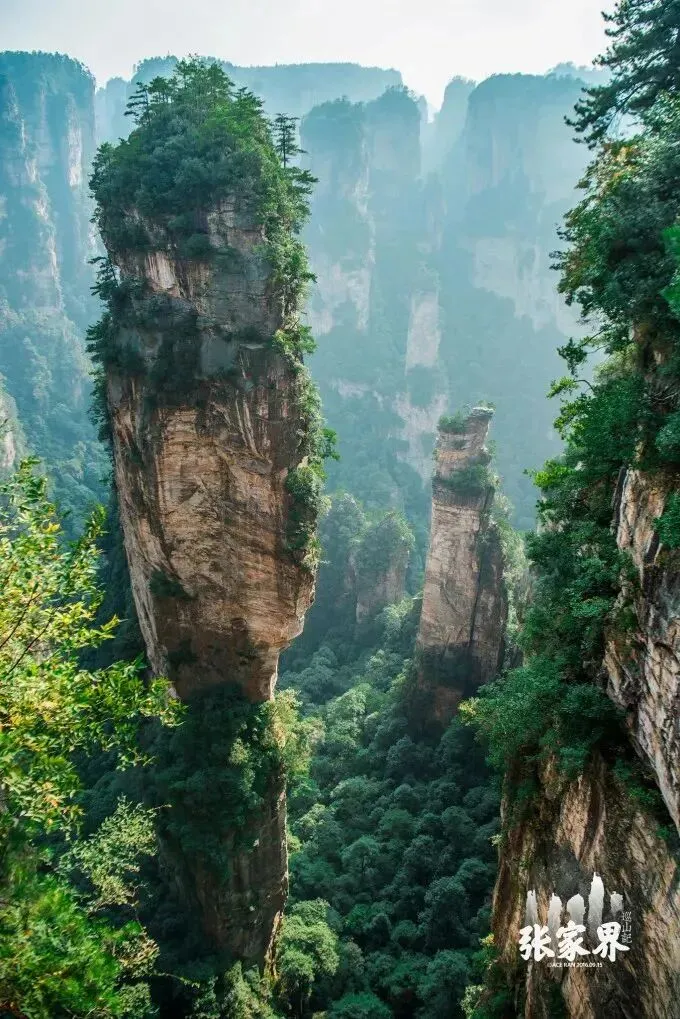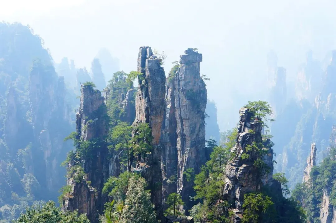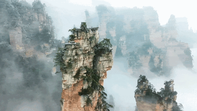 【袁家界景区】探寻《阿凡达》电影中的群山漂浮、星罗棋布的玄幻莫测世界--“哈利路亚山”即“南天一柱”(又名乾坤柱),参观云雾飘绕、峰峦叠嶂,继往气势磅礴的迷魂台、天下第一桥等空中绝景。