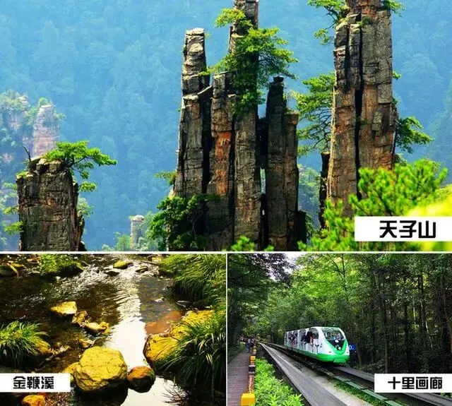 【天子山景区】“谁人识得天子面,归来不看天下山”,可见天子山风光旖旎,景色秀美,景点众多,游览集自然于人文于一体的贺龙公园、天子阁、御笔峰、仙女献花、西海石林、石船出海等。