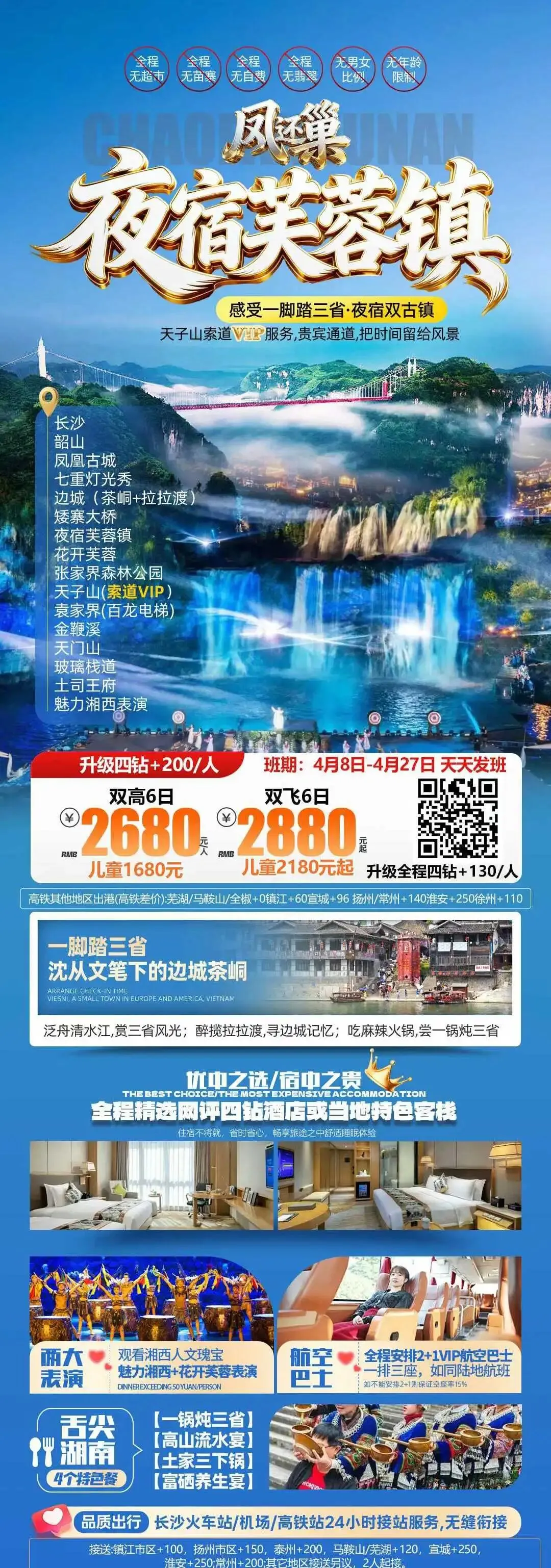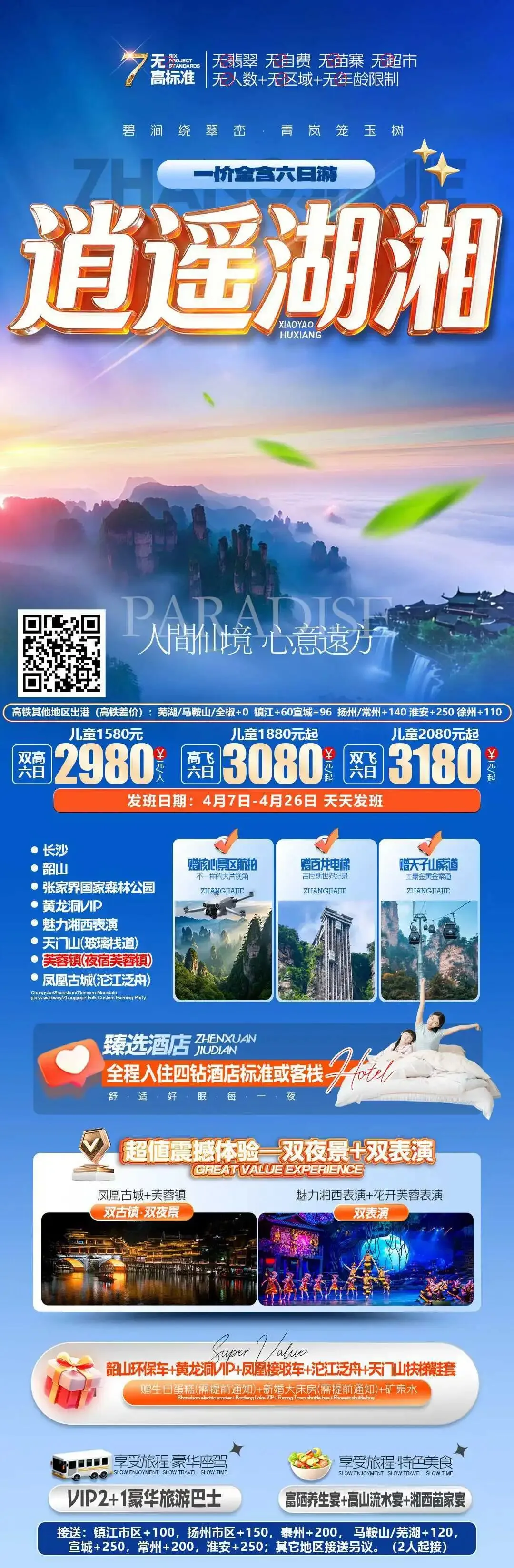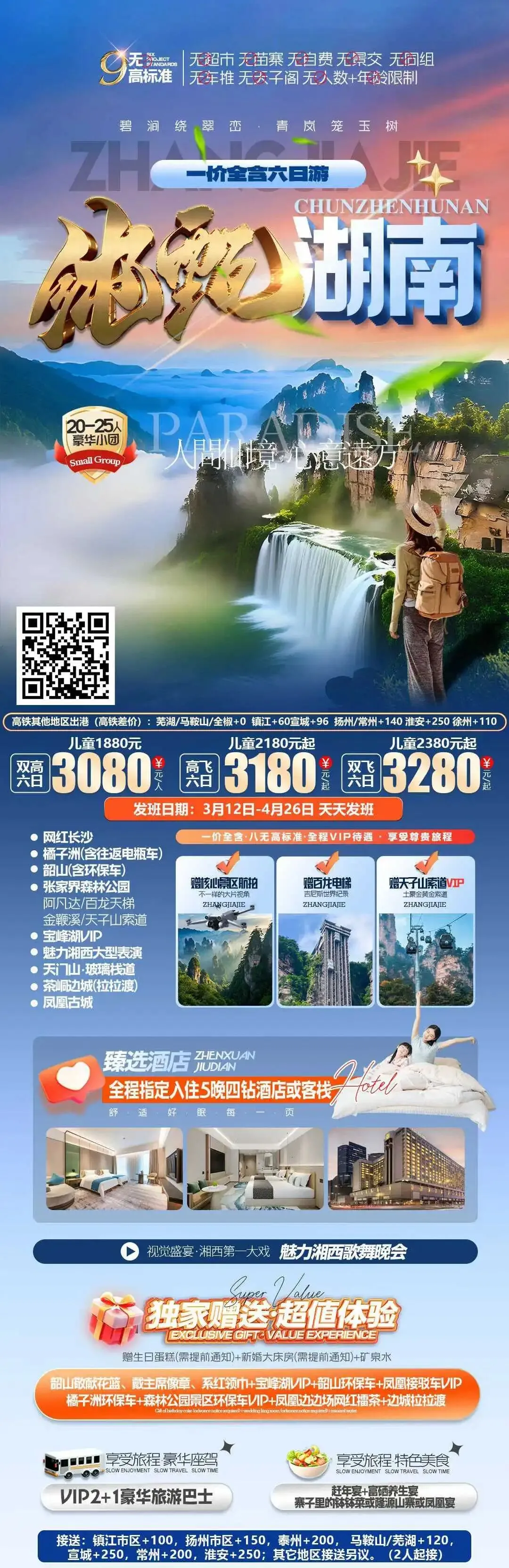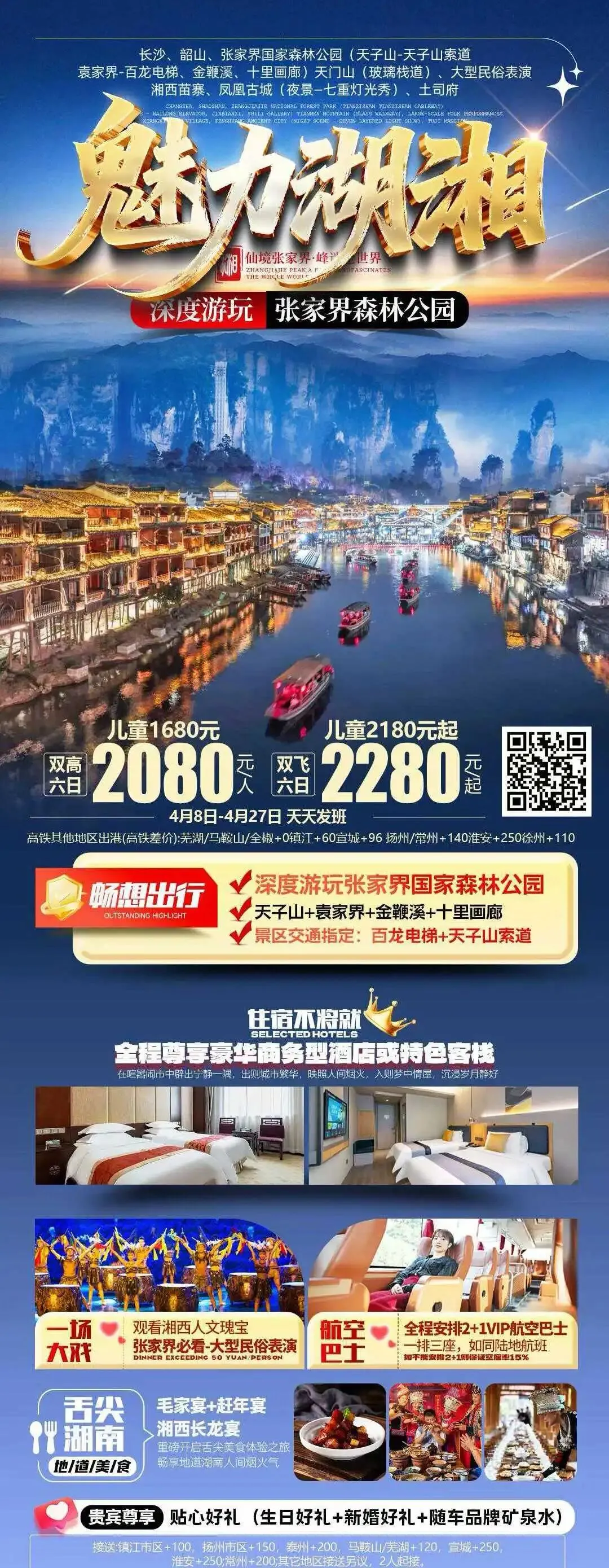 【错峰湘西】湖南长沙韶山 张家界 国家森林公园 袁家界 天子山 金鞭溪 天门山 凤凰古城 芙蓉镇